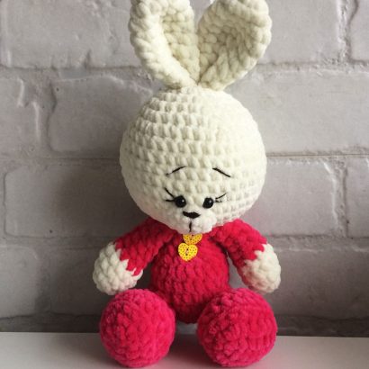 Особенности: игрушки кролик хендмейд – милый кролик мягкая игрушка своими руками сидит с опорой. Игрушка кролик может и сидеть, но основное положение – стоя с опорой! Большой кролик игрушка с подвижными ручками и ножками. Кролик игрушка – вязаные игрушки крючком до 35 см в бежевом цвете с мягкой плюшевой пряжей. Смешная мягкая игрушка кролик девочка в розово-бордовом комбинезоне – порадует как детишек, так и взрослых! Наша милая авторская игрушка зайка девочка – настоящий мастер веселья и объятий! Изготовлена собственноручно, она не просто игрушка, а настоящий друг, всегда готовый принести радость. Высотой до 35 см, зайка с подвижными ручками и ножками может стоять с опорой или сидеть, поражая своей волшебной стойкостью. Его бежевый цвет, приятный на ощупь плюш и оригинальный розово-бордовый комбинезон создают неповторимый образ! Эта вязаная игрушка зайка девочка станет отличным подарком для малышей и взрослых, ведь ее хороший вид и мягкость не оставят равнодушными никого. Идеальный компаньон для игр, сна и уютных вечеров! Зайчики игрушки – это настроение и особый презент в День рождения! Предлагаем нежный подарок – хендмейд эксклюзивную зайку девочку!