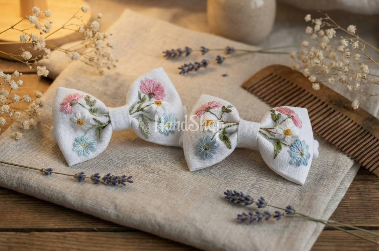 Особенности: аксессуары для волос с вышивкой ручной работы – пара детских белых бантов для волос своими руками с авторской вышивкой полевые цветы – ромашки, астры. Основание банта с размером 7 х 12 см выполнено из ткани – натуральный лен. Ручная вышивка цветов ромашки выполнена с использованием шелковых нитей DMC Франция. Белый бант имеет металлическую основу крокодил – под заказ можем сделать на основе резинку для волос. Авторские украшения для волос с вышивкой полевые цветы Украины – эксклюзивно, стильно и очень красиво! Авторский бант с маленькими разноцветными цветочками – прекрасное, романтическое дополнение образа на день рождения или Пасху. Детский белый бантик для волос с цветочками цветы – это мило, ярко и креативно!
