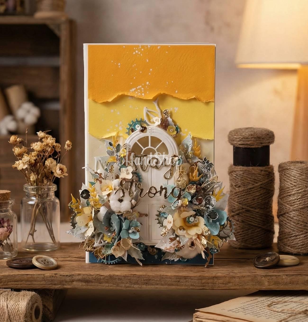 Особенности: открытки другу с днем рождения – объемная картина цветочная открытка ручной работы 20,5 х 12 см с надписью на английском языке: «Stay strong», созданная, чтобы вдохновлять, поддерживать и дарить веру в свою силу. Выполненная в теплой желтой гамме объемная открытка символизирует свет, надежду и внутреннюю энергию. В центре поздравительной открытки – уютный дом с дверью, обрамленными объемными цветами ручной работы, которые расцветают от новых возможностей. Это нежное напоминание о силе внутри, вере в себя и мечте, которая стоит за то, чтобы за нее бороться – собственный дом, собственное пространство, свою жизнь. Открытка вдохновляет быть сильным и независимым и иметь свой собственный дом. Открытка ручной работы конверт для денег – дополнение вашего поздравления! Простите открытки авторские конверты для денег на новоселье молодоженам – оригинально выражая чувства! Открытка с новосельем – неповторимое украшение будущего дома. Открытки другу с днем рождения – эксклюзивный знак внимания вашим родным, близким и друзьям!