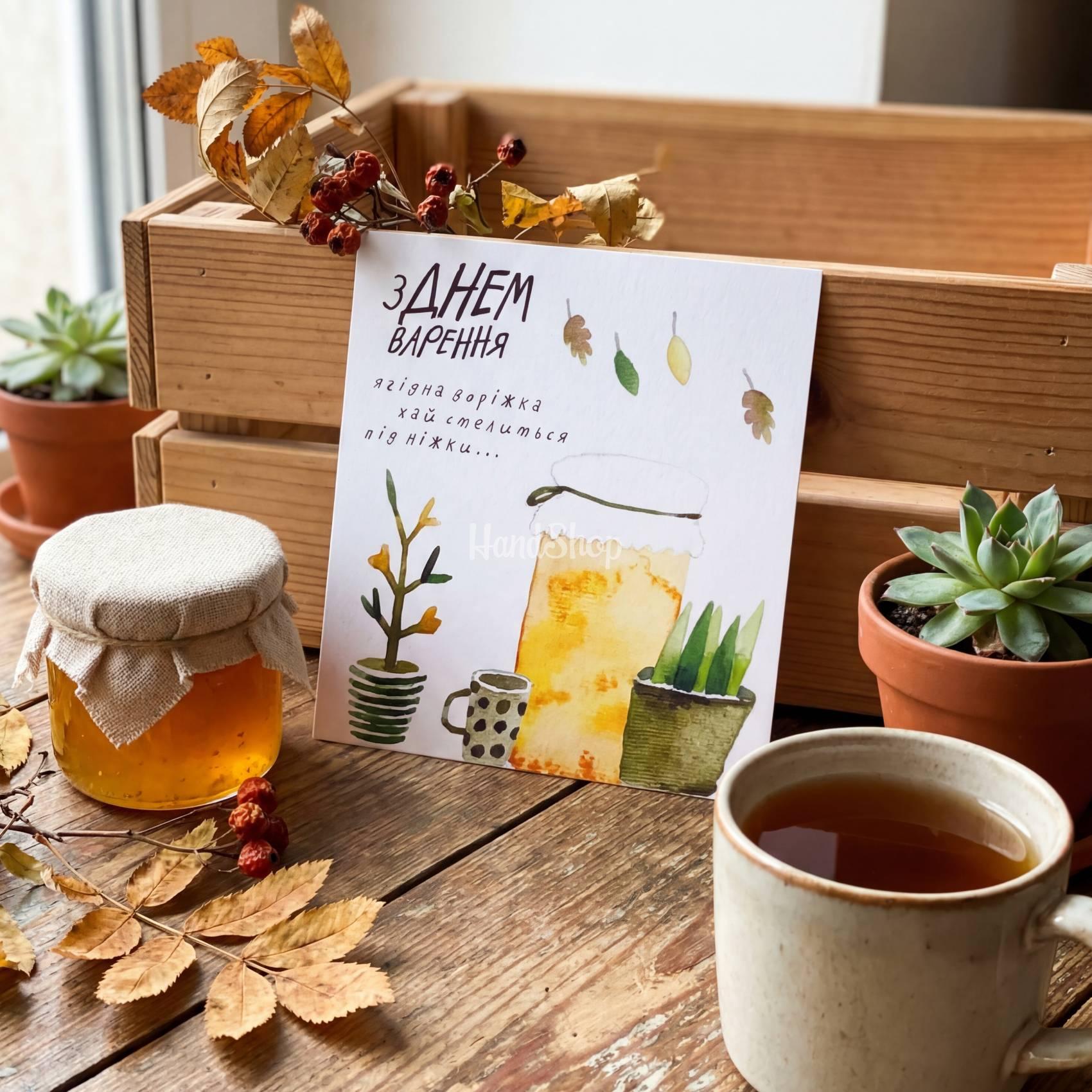 Особенности: открытка ручной работы с днем рождения подруге, маме, сестре с надписью на украинском языке: «Ягідна доріжка хай стелиться під ніжки». Открытка с днем рождения 10,5 х 10,5 см – особенность вашего поздравления! Подарите близкому человеку что-то особенное – открытку ручной работы, созданную с любовью и заботой. Это не просто приветствие – это маленькая история, оформленная с душой. Такая маленькая открытка – это теплое, нежное внимание, которое останется с подругой, мамой или сестрой надолго. Ее уникальный дизайн, ручное исполнение и искренняя надпись делают приветствие неординарным и очень личным. Рисованная открытка – идеальная для Дня рождения, она станет ярким акцентом вашего подарка или самостоятельным удивительным и трогающим удовольствием. Простите авторские открытки – оригинально выражая ваши чувства! Открытка с днем рождения в единственном экземпляре будет неповторимым украшением праздника. Говорите искренне, извините с любовью. Открытка ручной работы рисованная – настоящее украшение праздника