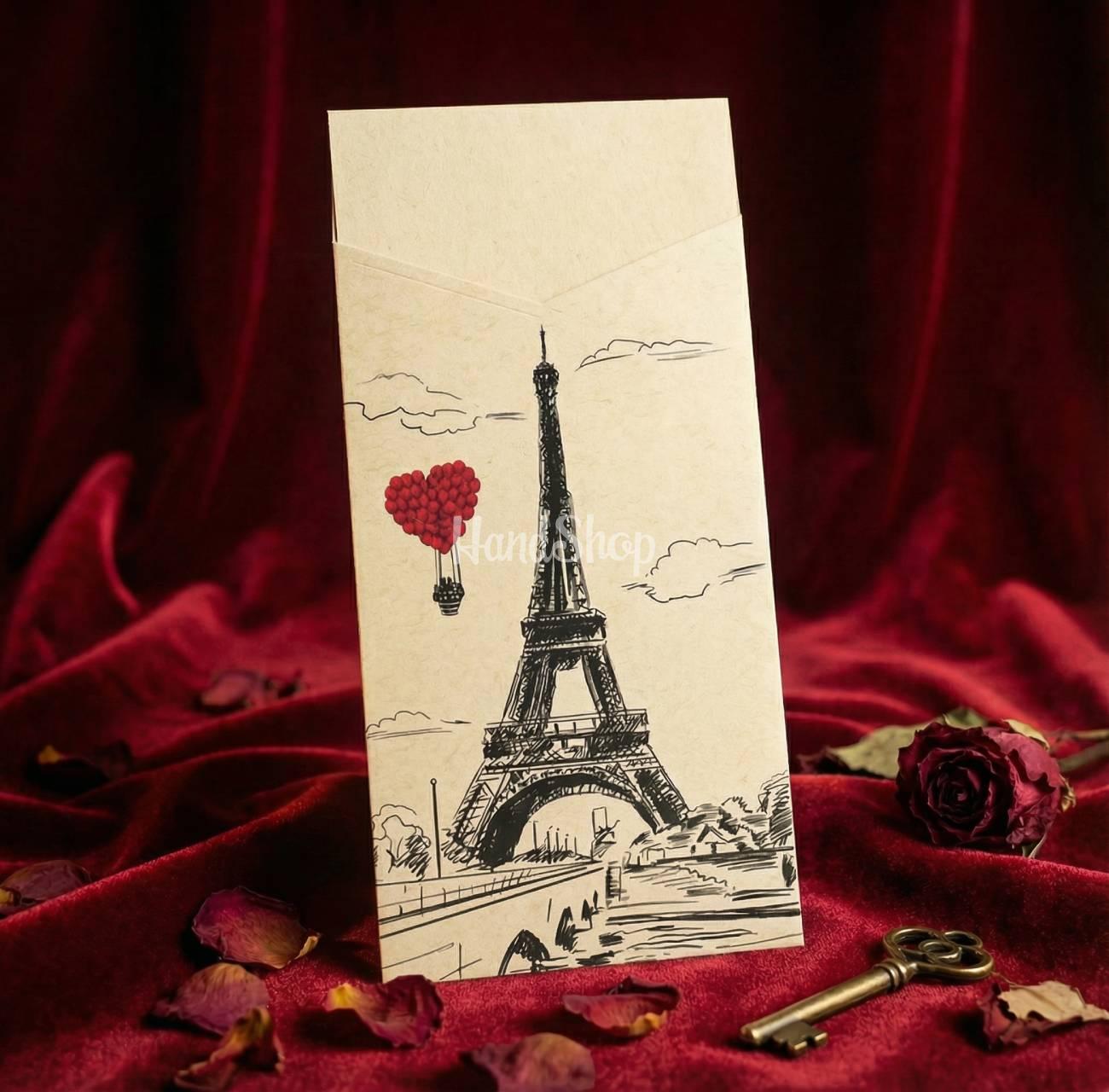 Особенности: поздравительные открытки – красивая романтическая открытка прямоугольной формы 10 х 21 см, изготовленная из турецкого бежевого дизайнерского картона, который приятен на ощупь и выглядит стильно и изысканно. Авторский печатный рисунок с Эйфелевой башней и воздушным шаром в форме красного сердца добавляет открытке французского шарма и романтики. Удивите любимого человека изящной романтической открыткой, передающей атмосферу нежности и вдохновения! Внутри открытки – изящная вкладка для поздравлений, которую можно легко вынуть и заполнить собственноручно. Это идеальный способ подарить теплые слова, сделать предложение или просто сказать люблю особенно красиво. Подарите остающиеся в сердце эмоции! Эта праздничная открытка Эйфелевой башня Париж – не просто приветствие, а мгновение, которое превращается в воспоминание. Ее сдержанный, но элегантный дизайн идеально подходит к особым моментам: Дню влюбленных, годовщин, признаний или просто искреннего «спасибо» сказанного с любовью. Эта открытка Paris – маленькая деталь, говорящая больше, чем тысяча слов. Она предназначена для тех, кто умеет любить тонко, красиво и искренне. Не медли – сделай момент незабываемым уже сегодня с нашей открыткой Paris!