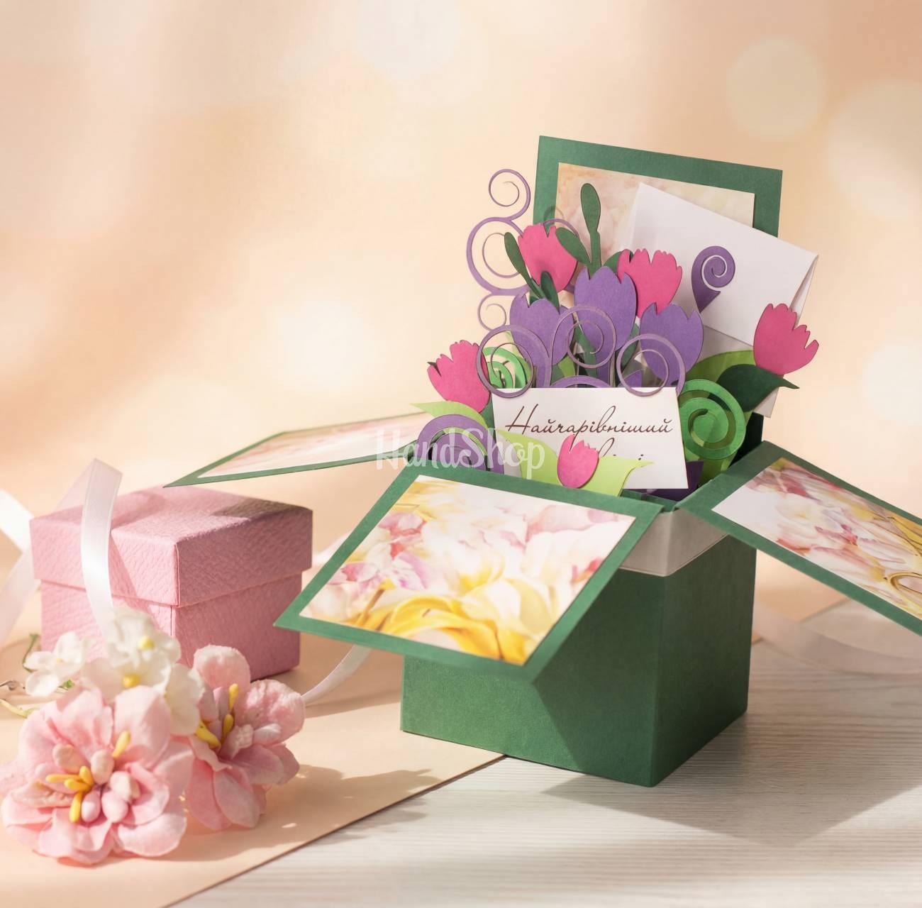 Особенности: открытка коробочки с цветами – идеальный выбор для празднования важных моментов и выражения своих лучших пожеланий. Изготовленная из итальянского дизайнерского картона открытка коробочка с цветами 12 x 12 см – станет отличным дополнением к любому подарку или отдельным презентом для особых женщин в вашей жизни. Внутри открытки расположена 3D иллюстрация с нежными цветами тюльпанов, завитками и декоративными элементами в розово-фиолетово-зеленых цветах, которые придают открытке изящный и праздничный вид. Открытка коробочка отображает красоту, нежность и элегантность женского мира, что делает ее идеальной для любого торжества или просто для того, чтобы порадовать близкого человека. Женская открытка содержит надпись на украинском языке «Самый волшебный в мире», что придает ей особую, персонализированную атмосферу. Внутри 3D открытки находится маленький белый конвертик, в который можно вложить свое личное письмо или пожелание – идеальный способ сделать подарок еще более персонализированным. Компактная, но изысканная наша авторская коробочка открытка идеально подходит для того, чтобы составить в нее пожелание или короткое письмо, создавая дополнительную таинственность и атмосферу праздника. Эта замечательная 3D открытка коробочка подходит для любого празднования – 8 марта, день рождения, юбилей или просто для того, чтобы сказать «ты самая лучшая». Ее утонченность и стиль позволяют использовать ее не только как открытку, но и как самостоятельный подарок, дающий незабываемые эмоции. Порадуйте женщину в своей жизни этой великолепной объемной коробочкой, которая станет выражением ваших лучших пожеланий и теплых слов!