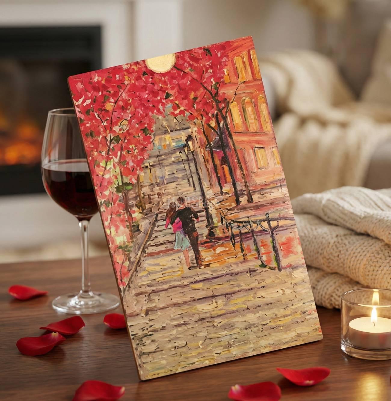Особенности: поздравительные открытки конверты – красивая романтическая открытка 12 х 19,5 см, изготовленная из турецкого бежевого дизайнерского картона, который приятен на ощупь и выглядит стильно и изысканно – настоящее произведение искусства. Романтическая открытка-конверт прямоугольной формы – это не просто дополнение к подарку, а отдельная история любви, рассказанная языком цвета и настроения. Открытка изготовлена из турецкого бежевого дизайнерского картона премиального качества. Его приятная на ощупь текстура создает ощущение тепла и изящества, а сдержанный оттенок придает стилю и элегантности. Это настоящее произведение искусства, подчеркивающее особенность момента. Главный акцент – авторский рисунок с изображением влюбленной пары на осенней прогулке по городу. Красные и оранжевые оттенки окутывают композицию теплом, словно последние солнечные лучи золотой осени. В этой иллюстрации – уют, нежность и искреннее чувство, которое хочется навсегда сохранить. Наша открытка – идеально подойдет для годовщины, для признания или романтического сюрприза, для свадебного подарка или для Дня влюбленных или для тех, кому хочется сказать «люблю» по-особому. Эта открытка создана для моментов, когда слова должны звучать мягко, а подарок – выглядеть безупречно. Простите не просто открытку – извините атмосферу любви, тепла и совместных прогулок под осенним небом.
