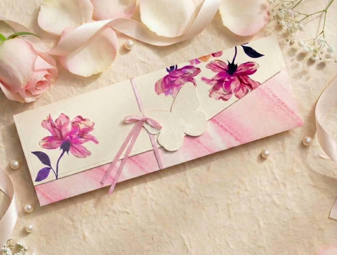 Особенности: свадебные конверты для денег – оригинальный праздничный длинный конверт прямоугольной формы 9 х 26 см, изготовленный из турецкого бежевого дизайнерского картона, который приятен на ощупь и выглядит стильно и изысканно – настоящее произведение искусства. Особое очарование конверту для денег добавляет авторский рисунок – разноцветные весенние цветы в розово-фиолетовой гамме. Это сочетание цветов создает атмосферу тепла и свежести, как дыхание весны. Свадебный конверт перевязан розовой лентой и имеет прикрепленную небольшую бабочку – место для ваших пожеланий и подписи. Этот элегантный женский конверт – настоящее произведение искусства, которое придаст особый шарм любому празднику. Цветочный конверт легко открывается и внутри вы найдете место для персональных пожеланий и денежного сюрприза. Такой красивый длинный конверт станет отличным акцентом на любом праздничном мероприятии, делая ваш подарок еще более значимым и незабываемым.