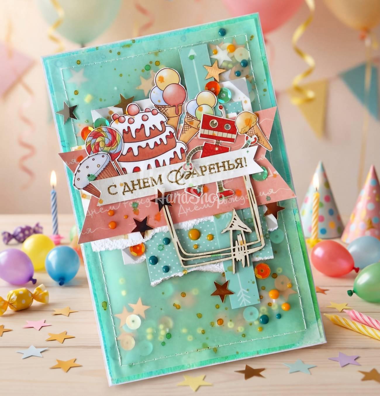 Особенности: открытки своими руками для детей – открытка для детей с днем рождения ручной работы размером 10 х 15 см и с надписью на русском языке: «С Днем Варенья». Открытка с днем рождения в бирюзовой гамме с детской праздничной тематикой – День Рождения! Дарите открытки авторские – оригинально выражая чувства! Открытки поздравления ребенку – неповторимое украшение праздника! Поздравительные открытки с рождением ребенка – мило и актуально!