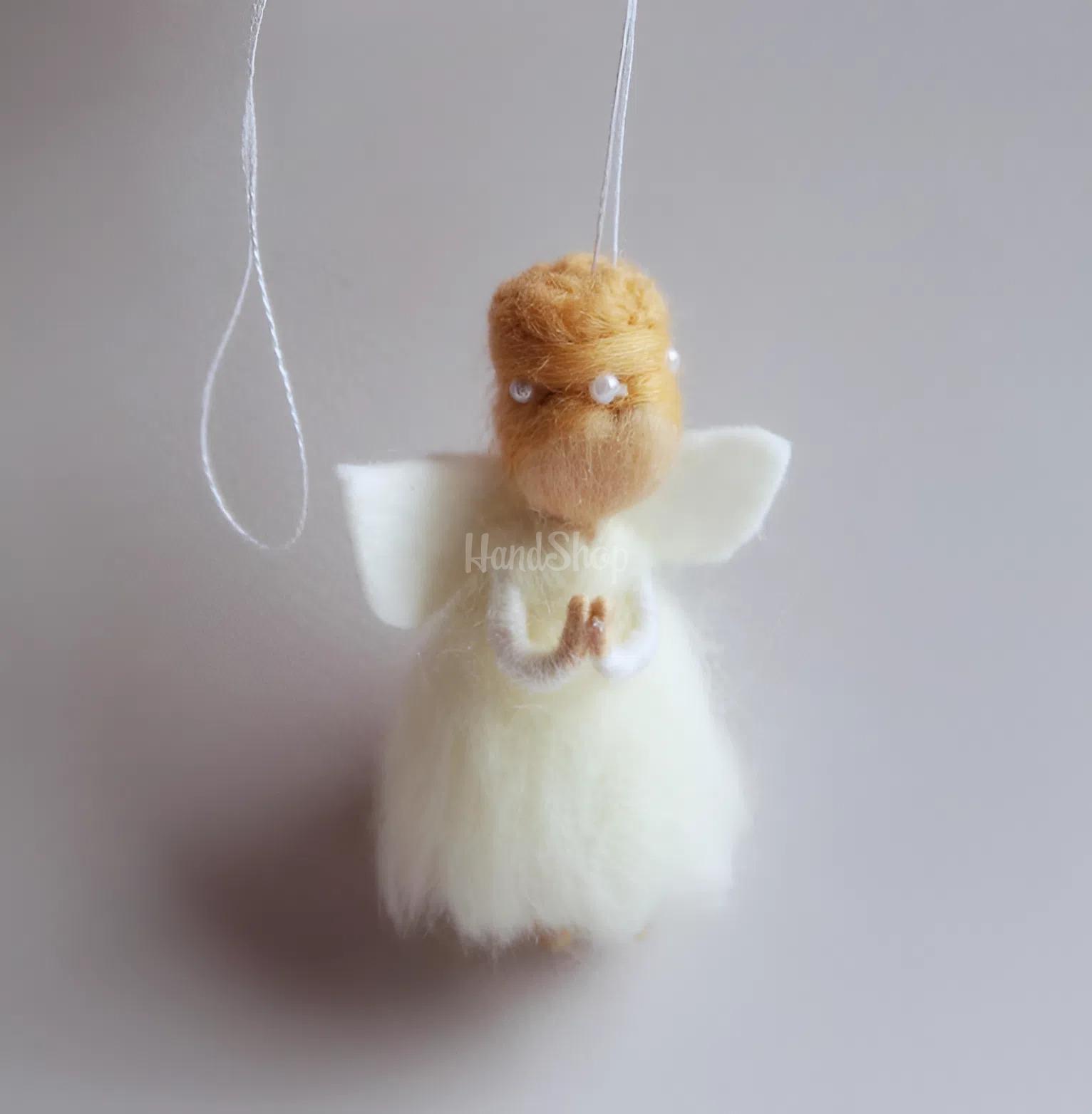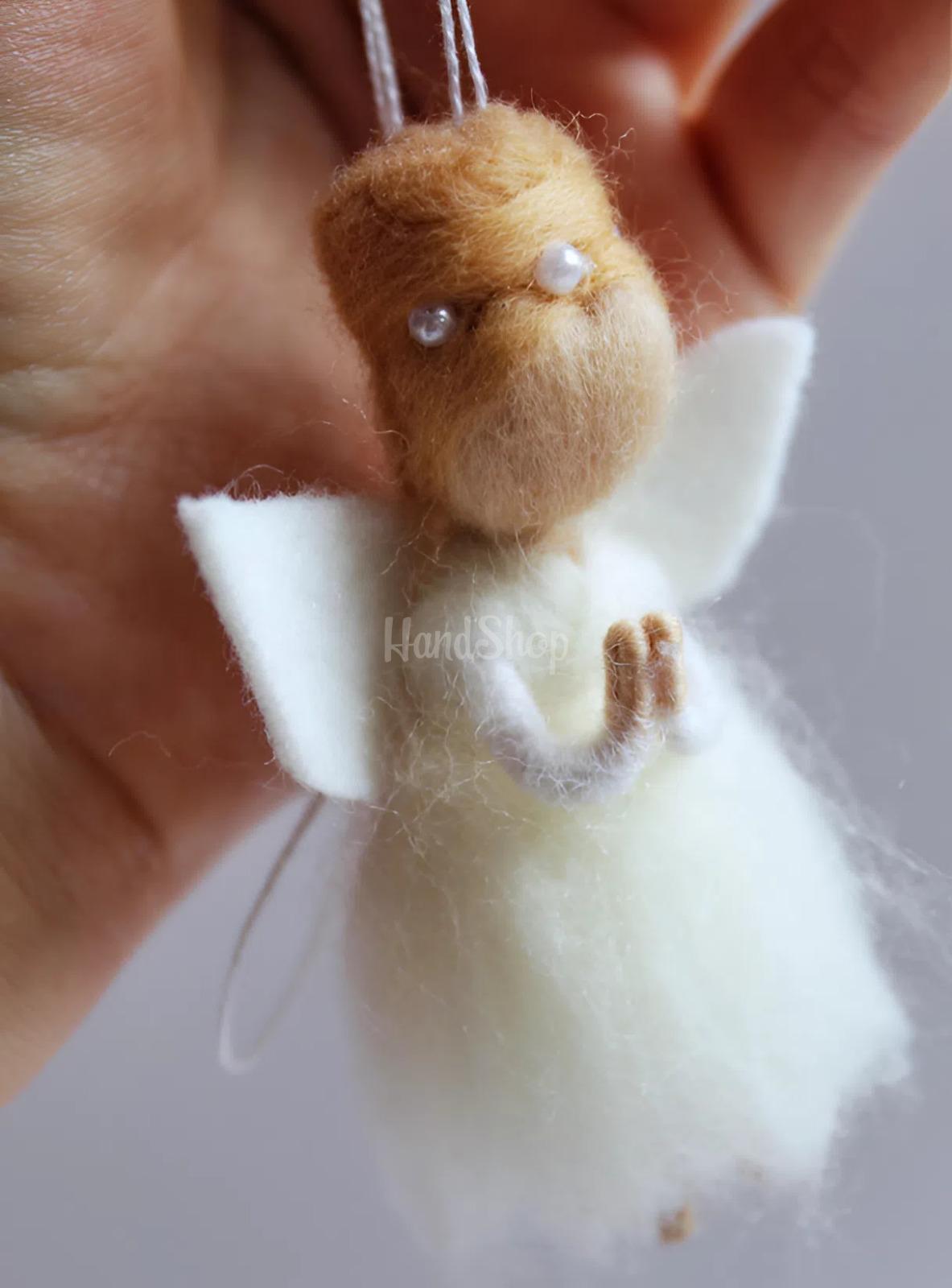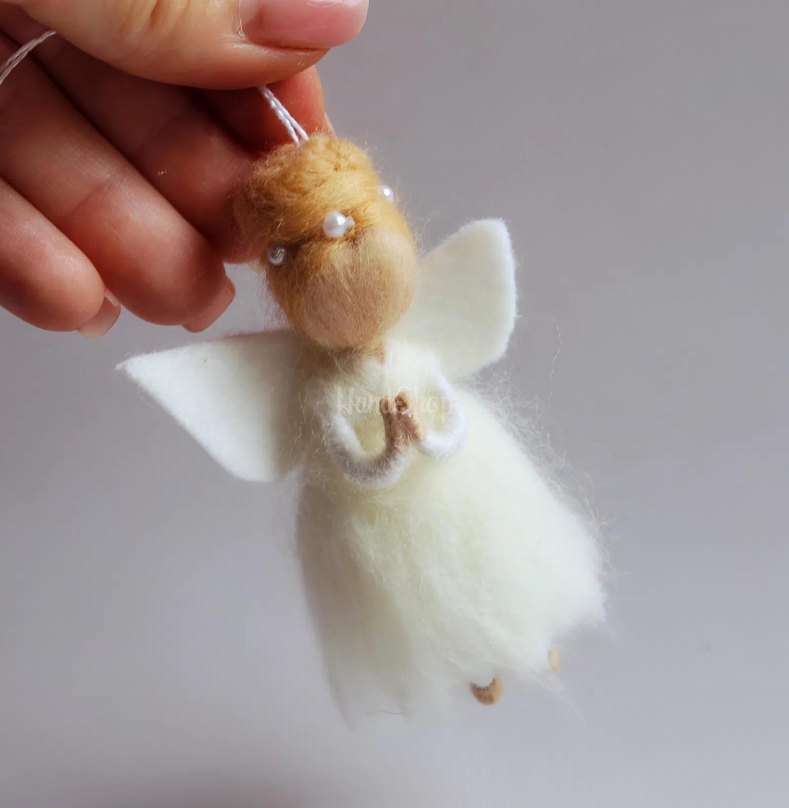 Особенности: маленькие игрушки куклы – сувенирная куколка ангел из шерсти своими руками небольшого размера. Маленькая кукла-ангел, созданная в технике валяния из шерсти – это нежный и душевный аксессуар, наполняющий пространство теплом и уютом. Миниатюрная игрушка размером около 8 см выглядит очень аккуратно и изящно, привлекая внимание детализацией и ручной работой. Кукла выполнена в образе волшебной балерины-ангела: в пышном белом платье, с аккуратно собранными в шишку белокурыми волосами и милым, спокойным образом. Особый шарм добавляют маленькие ангельские крылышки позади, которые подчеркивают ее легкость и сказочность. Это не просто игрушка, а стильный декоративный сувенир-подвеска. Она отлично подойдет для украшения автомобиля, детской комнаты или новогодней елки. Такой ангел гармонично дополнит любой интерьер и станет милым акцентом, создающим атмосферу тепла, нежности и спокойствия. Каждая кукла ангел изготовлена ​​из шерсти вручную, поэтому имеет свой уникальный характер и неповторимый вид. Это идеальный вариант небольшого подарка или символического сувенира для близких, который дает положительные эмоции и сохраняет частицу тепла мастера. Маленький ангел-балерина – это больше, чем украшение. Это символ легкости, гармонии и светлых пожеланий.