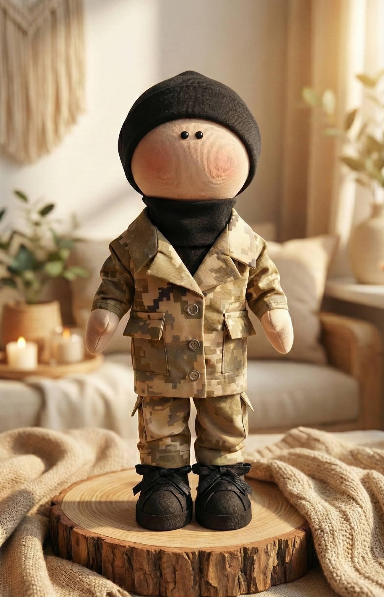 Особенности: интерьерная кукла – сувенирная большая авторская военная кукла парень защитник 37 см в украинской форме – образ молодого современного защитника Украины. Кукла военный одета в современную модель милитари формы Вооруженных Сил Украины, что придает ей еще большую подлинность и реалистичность. В военной кукле текстильной шапочки, одежду и обувь не снимаются! Текстильная интерьерная кукла защитник военный стоит без опоры! Кукла текстильная украинский военный — не просто игрушка, а воплощение мужества, отваги и большой любви к родной земле. Выполненная от души и с особым вниманием к деталям, кукла представляет собой образ молодого украинского военного – героя наших дней, стоящего на защите родины. Авторская кукла военный будет отличным подарком не только для детей, но и для взрослых, как символ гордости и благодарности нашим военным. Она напоминает о тех, кто ежедневно рискует своей жизнью ради мира и покоя в Украине. С такой куклой каждый дом наполнится духом патриотизма и гордости своей страны. Упаковка: будет упакован в большую подарочную коробку!