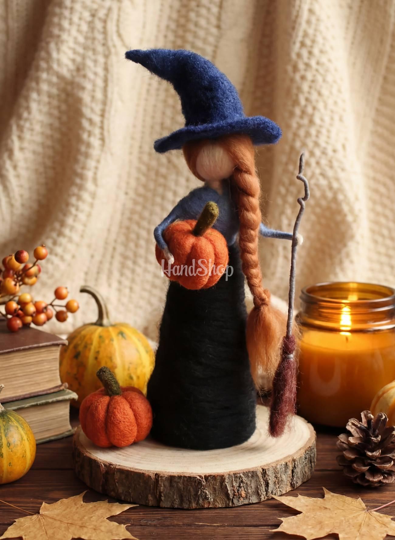 Особенности: кукла из шерсти ручной работы – сувенирная кукла рыжая ведьмочка Halloween 2025 на деревянной подставке. Интерьерная кукла рыжеволосая ведьма своими руками среднего размера 18-20 см, что делает ее идеальной для декора или коллекционирования или презентом на праздник Halloween 2025. Эта интерьерная кукла олицетворяет образ хорошей осенней ведьмы. Ее длинная рыжая коса, острая шляпка, сине-черное платье и маленькая метла в руках – каждая деталь продумана до мелочей, чтобы создать завораживающий образ с первого взгляда. Интерьерная кукла из шерсти мериноса, изготовленная в технике сухого валяния — не просто украшение, а авторское произведение искусства, которое подарит уют и сказочную атмосферу каждому уголку вашего дома. Эта рыжая красавица олицетворяет образ доброй осенней ведьмы – дружелюбной, немного загадочной и невероятно стильной. Она кажется ожившей страницей осенней сказки, что принесет в ваш дом нотки волшебства, тепла и индивидуальности. Каждая кукла ведьмочка – уникальна и сделана вручную с большой любовью к деталям. Это не серийное производство, а теплая история, обитающая в каждом волокне шерсти. Добавьте магии в свое пространство – заказывайте авторскую куклу-ведьмочку уже сейчас и создайте настоящую атмосферу Halloween у себя дома!