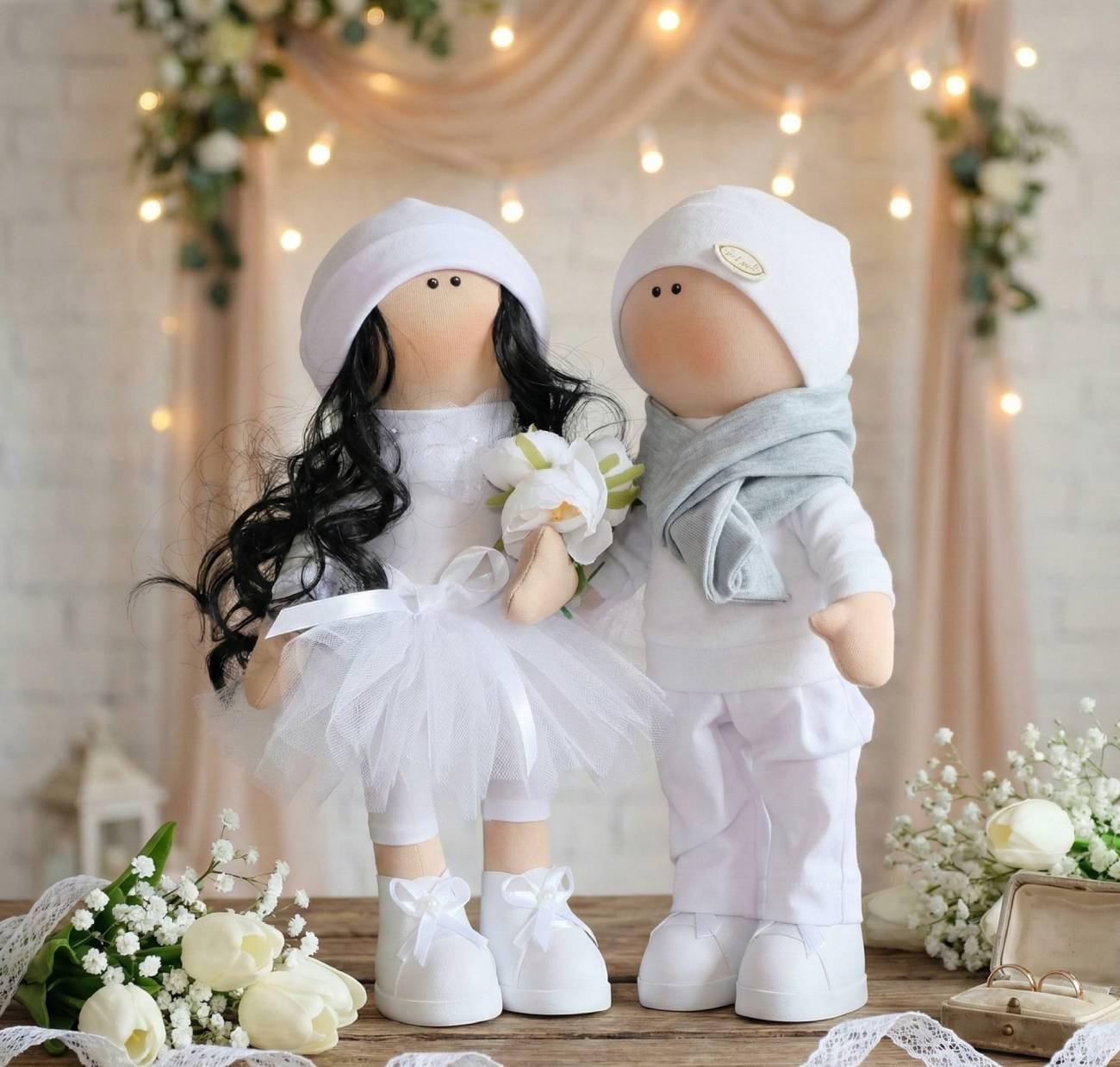 Особенности: куклы свадебные пары — авторские текстильные куклы ручной работы по 37 см в образе жениха и невесты. Пара авторских текстильных кукол — кукла тильда свадебная пара — стоят самостоятельно, одежда в свадебных куклах НЕ снимается! Куклы в свадебном образе — отличный и оригинальный подарок молодоженам. Авторские текстильные куклы ручной работы будут прекрасным сувениром вашим родным и близким из Украины! В авторских текстильных куклах — куклы свадебные, по вашему желанию, напишем имена Жениха и Невесты на деревянных сердечках!
