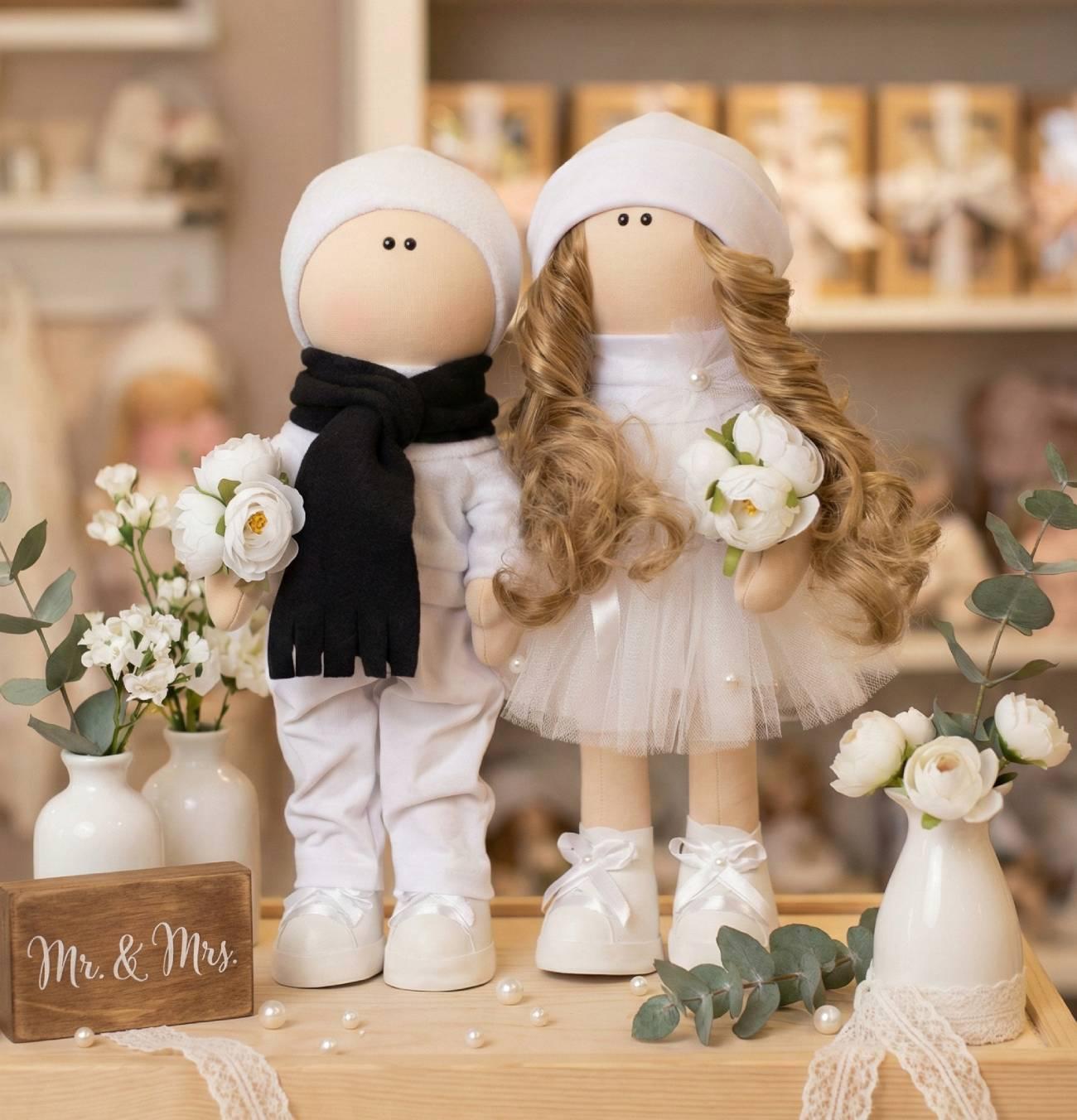 Особенности: куклы свадебные пары – авторские текстильные куклы ручной работы по 37 см в образе жениха и невесты. Пара авторских текстильных кукол – кукла тильда свадебная пара – стоят самостоятельно, одежда в свадебных куклах не снимается! Куклы в свадебном образе – отличный и оригинальный подарок молодоженам. Авторские текстильные куклы ручной работы будут отличным сувениром вашим родным и близким из Украины! Каждая свадебная кукла высотой 37 см изготовлена с любовью и вниманием к деталям, что делает их идеальным праздничным акцентом на вашем свадебном празднике или отличным подарком для молодоженов. Приобрести авторские текстильные куклы молодожены можно уже сейчас – пусть ваши близкие наслаждаются магией в этот неповторимый момент!