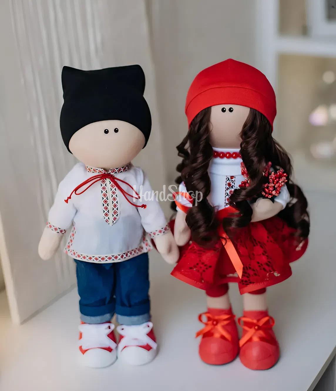 Особенности: авторские текстильные куклы ручной работы по 37 см в патриотических образах.Авторские текстильные куклы ручной работы – это не просто предметы декора, а настоящее воплощение украинской культуры и национальной гордости. Каждая кукла имеет уникальный стиль и символ нашей истории и традиций. Высотой 37 см эти куклы в украинских патриотических образах прекрасно передают атмосферу национальной красоты и самобытности. Кукла девочка Тильда – это настоящая украинка с кудрявыми волосами, одетая в традиционную белую вышиванку и яркую красную юбку. Ее образ – это воплощение доброты, красоты и непобедимого духа украинской женщины. Она станет отличным подарком для любой поклонницы украинских традиций. Кукла мальчик Тильда – это современный патриот, воплощающий силу и преданность своей Родине. Его вышиванка – символ гордости и национальной идентичности. Такая кукла напоминает о важности единства и самоуважения. Особенностью этих кукол является способность стоять самостоятельно, без дополнительной поддержки, что делает их особенно устойчивыми и удобными для размещения в любом интерьере. А еще, одежда кукол не снимается, что придает им дополнительный шарм и уникальность. Эти сувенирные куклы украинцы – идеальный подарок для тех, кто ценит украинскую культуру, историю и народные традиции. Они станут ярким акцентом в вашем доме и надолго сохранят в памяти моменты подлинного патриотизма.
