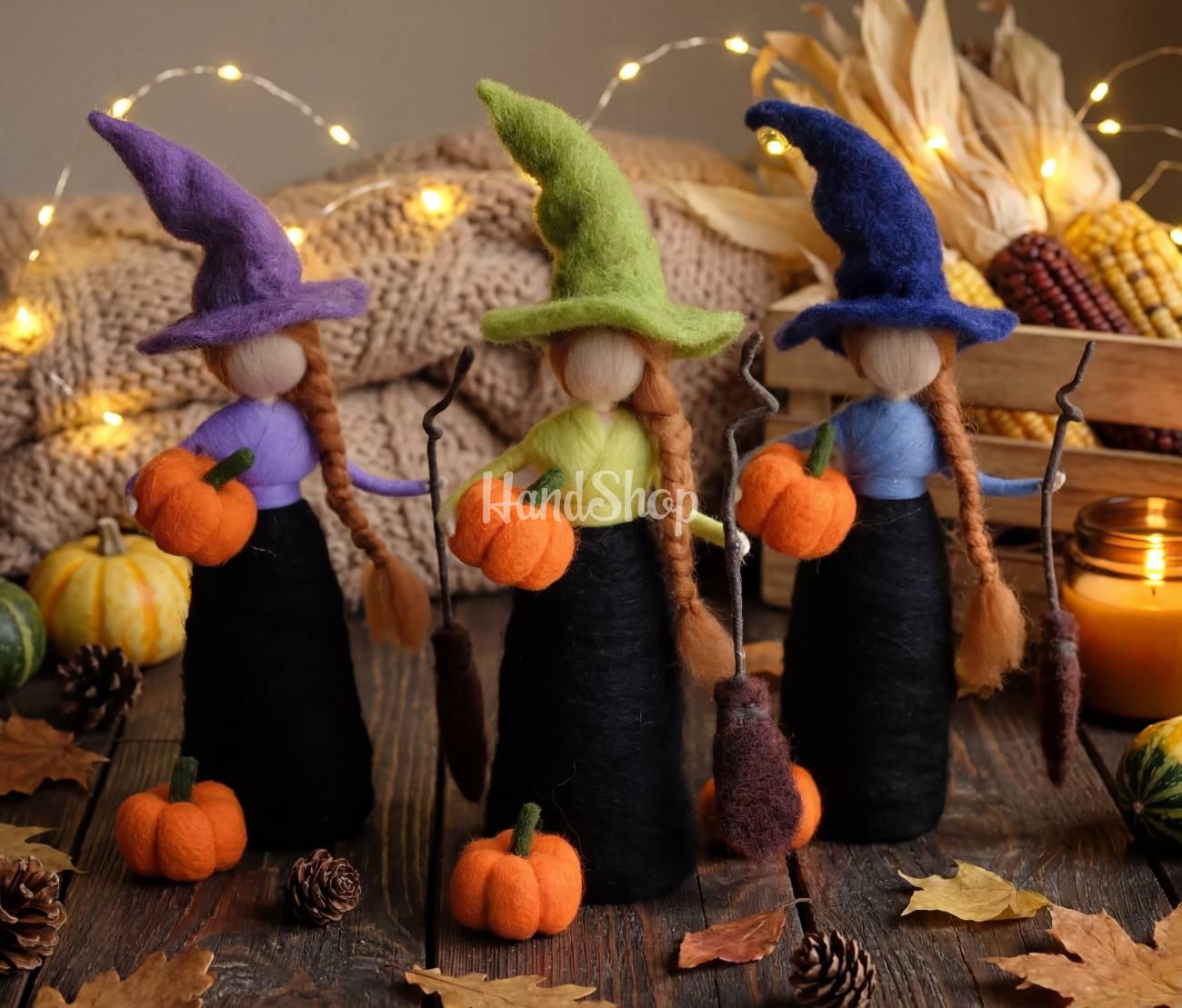 Особенности: куклы из шерсти ручной работы – сувенирные куклы валяния шерсти на осенний праздник Halloween 2025. Интерьерная кукла своими руками среднего размера 18-20 см – ведьмочка рыжая кукла на праздник Halloween. Добавьте магии в свой интерьер или сделайте незабываемый подарок по случаю Хэллоуина с нашей уникальной куклой ручной работы из шерсти мериноса. Это интерьерная сувенирная кукла-ведьмочка среднего размера (18-20 см), созданная в технике сухого валяния из натуральной шерсти. Она станет ярким акцентом к осеннему декору и прекрасным подарком для любителей необычного и милого на мистический праздник. Детская кукла Хэллоуин выполнена из шерсти мериноса в ярком образе рыжеволосой магической куклы ведьмы с длинными волосами. Кукла Хэллоуин ведьма на деревянной подставке – закреплены, не снимаются! Кукла валяная из шерсти в длинном праздничном платье с черной шляпой колпаком, веником и тыквой ручной работы. Наша авторская сувенирная кукла ведьмочка на деревянной подставке станет идеальным – осенним декором для дома или детской; сувениром на Halloween 2025; подарком для детей и взрослых, которые ценят ручную работу и сказочную атмосферу. Подарите частицу тепла и фантазии – выберите аутентичную валяную куклу-ведьмочку, которая наполнит ваш Хэллоуин уютом и магией!