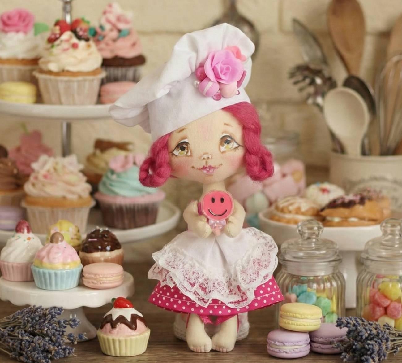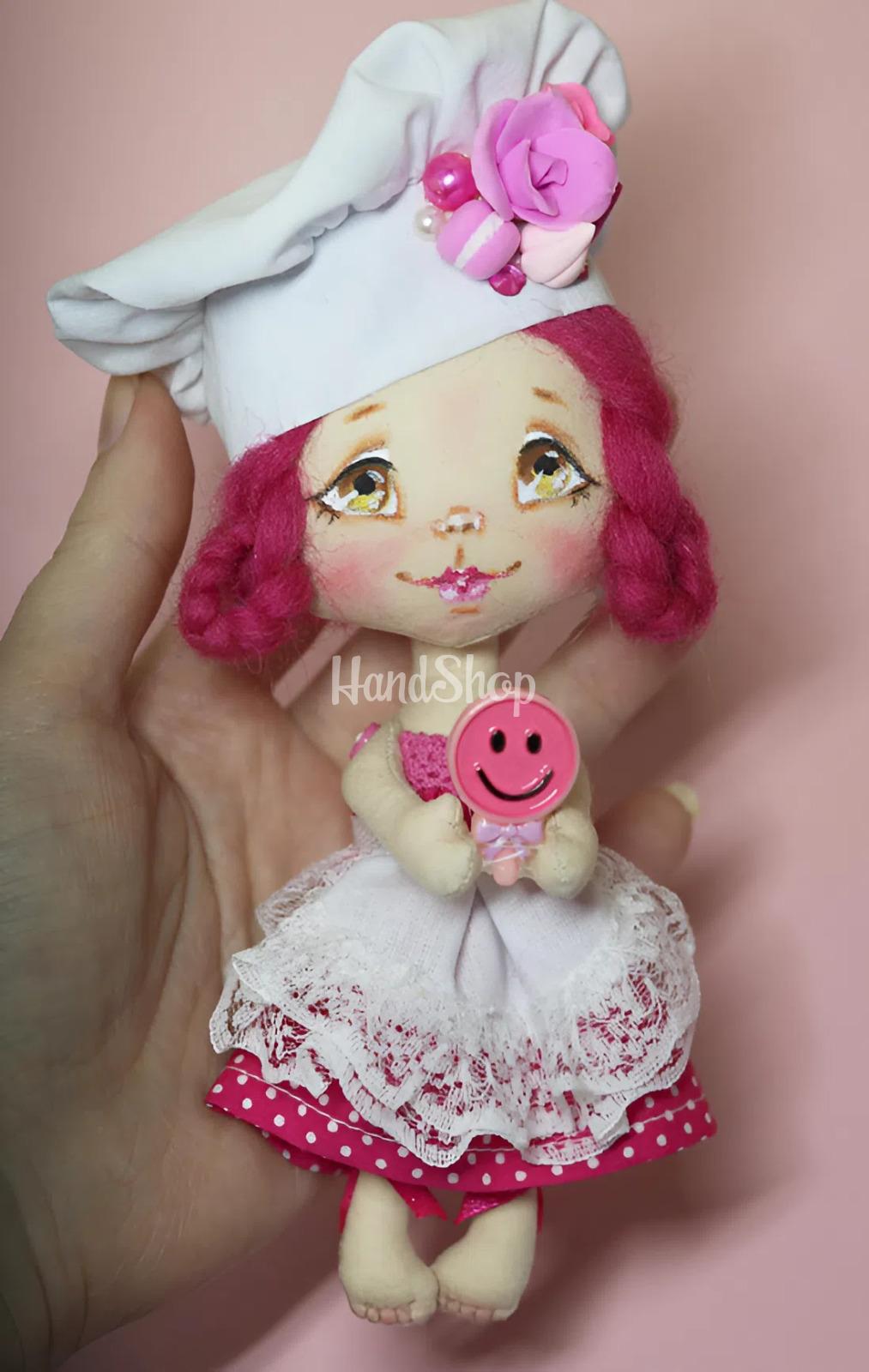 Особенности: детские куклы ручной работы кондитер – мини кукла своими руками ростом 14-15 см в виде маленькой кулинарной девочки кондитера. Детская игрушка кукла выполнена в сказочном образе – кукла с розовыми волосами в белом чепчике, украшенном цветами и макарунами ручной работы из полимерной глины. Текстильная кукла кулинар, одетый в длинное розовое платье в белый горох и передники с сетью. В руках кукла кондитер держит леденец смайл. Мини куколка повар кондитер, одетый в белый чепчик. Авторская кукла с розовыми волосами и большими глазами – рисованные акриловыми красками. В мини кукле одежда не снимается! Куколка своими руками кулинар стоит с опорой! Детские куклы для девочек кондитеры в индивидуальном экземпляре! Эта кукла кондитер – не просто игрушка, она олицетворяет самые яркие эмоции прекрасной женской профессии. Она станет идеальным другом для вашего ребенка, помогая ему представлять и творить новые истории и приключения. Выберите чудо и мечтательность, выберите куклу кондитера для самых ярких и забывших моментов в жизни вашего ребенка. Присоединяйтесь к нам в мире сказок и мечтаний, где каждая кукла – это источник радости и веселья для вашей семьи.