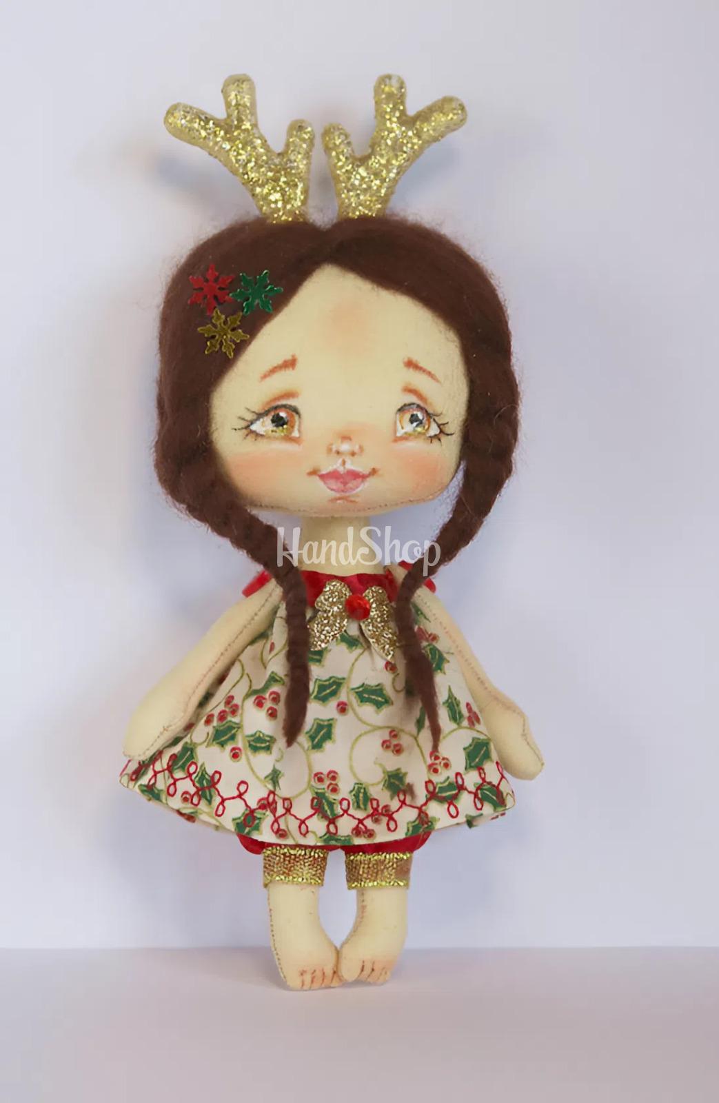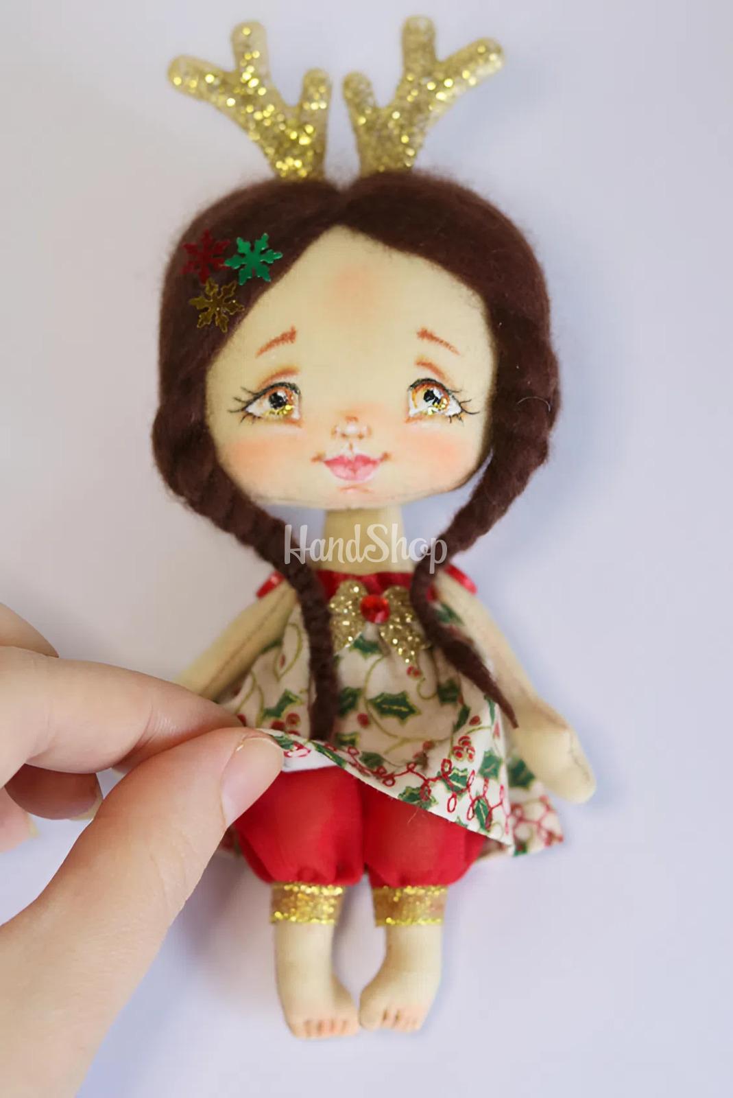 Особенности: новогодние детские куклы ручной работы – мини кукла своими руками с ростом 15 см в образе праздничного рождественского оленя с рожками. Погрузитесь в мир зимней сказки вместе с волшебной мини куклой ручной работы высотой 15 см, созданной в образе нежного рождественского оленя. Ее темные длинные волосы, заплетенные в две косички и украшенные звездочками из фетра, придают волшебный вид и ощущение праздника. Милые оленьи рожки, завершающие этот образ, делают куклу настоящим символом зимней сказки. Кукла новогодняя одета в яркое нарядное платье с новогодним рисунком, что придает еще больше уюта и настроения. Это идеальный подарок для ваших родных, друзей или коллег – отличная игрушка, которая станет приятной деталью новогоднего декора или частью праздничной коллекции! Подарите детям и близким частицу магии этого Рождества 2026 вместе с нашими куклами ручной работы! Погрузитесь в зимнюю сказку с этой замечательной мини-куклой ручной работы, созданной в образе праздничного оленя! Высотой всего 15 см, она олицетворяет атмосферу Рождества 2026 года и дарит теплоту и магию праздников. Каждая кукла – это уникальное авторское произведение, изготовленное с большой любовью и вниманием к деталям.