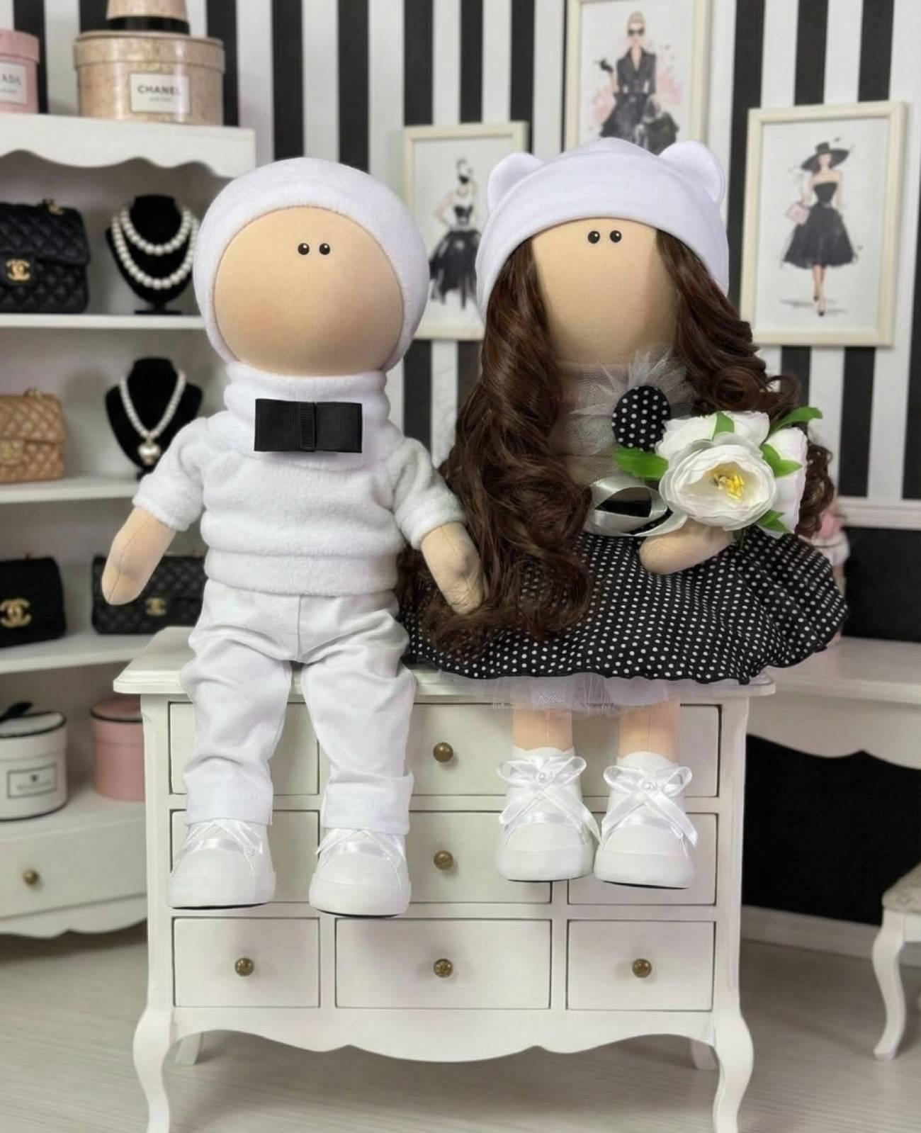Особенности: куклы свадебные пары – авторские текстильные куклы ручной работы по 37 см в образе стильного современного жениха и невесты. Пара авторских текстильных кукол – кукла тильда свадебная пара – стоят самостоятельно, одежда в свадебных куклах не снимается! Куклы в современном свадебном образе – прекрасный и оригинальный подарок молодоженам. Авторские текстильные куклы ручной работы будут отличным сувениром вашим родным и близким из Украины! Каждая свадебная кукла высотой 37 см изготовлена с любовью и вниманием к деталям, что делает их идеальным праздничным акцентом на вашем свадебном празднике или отличным подарком для молодоженов. Приобрести авторские текстильные куклы молодожены можно уже сейчас – пусть ваши близкие наслаждаются магией в этот неповторимый момент! Упаковка: будут упакованы в большие подарочные коробки!