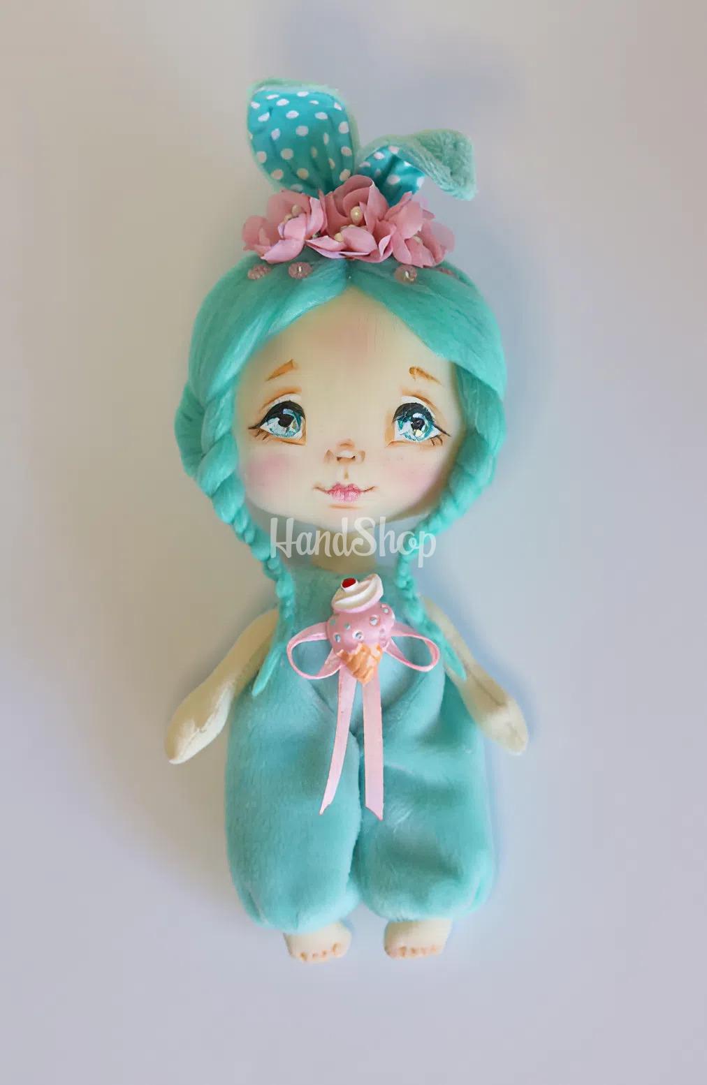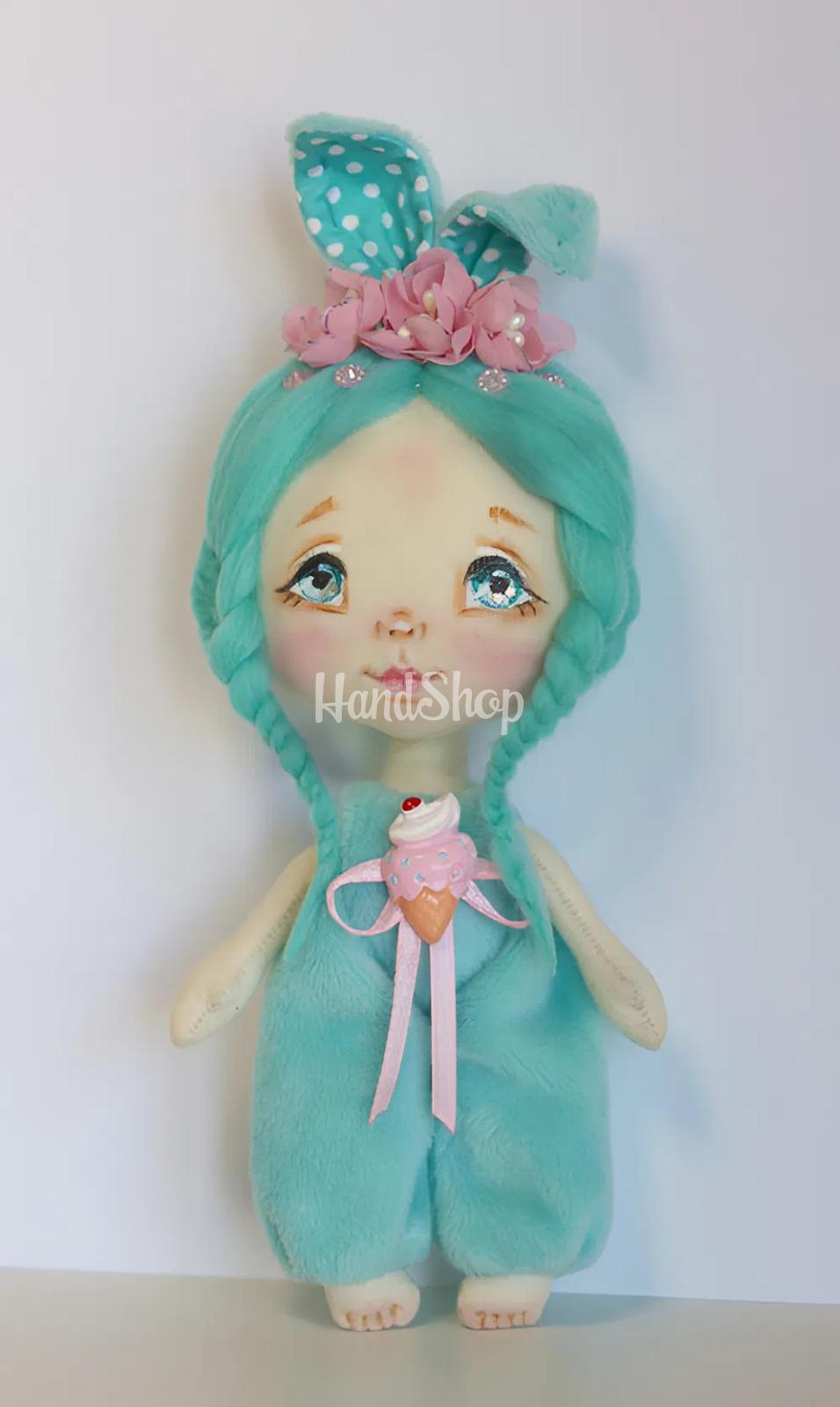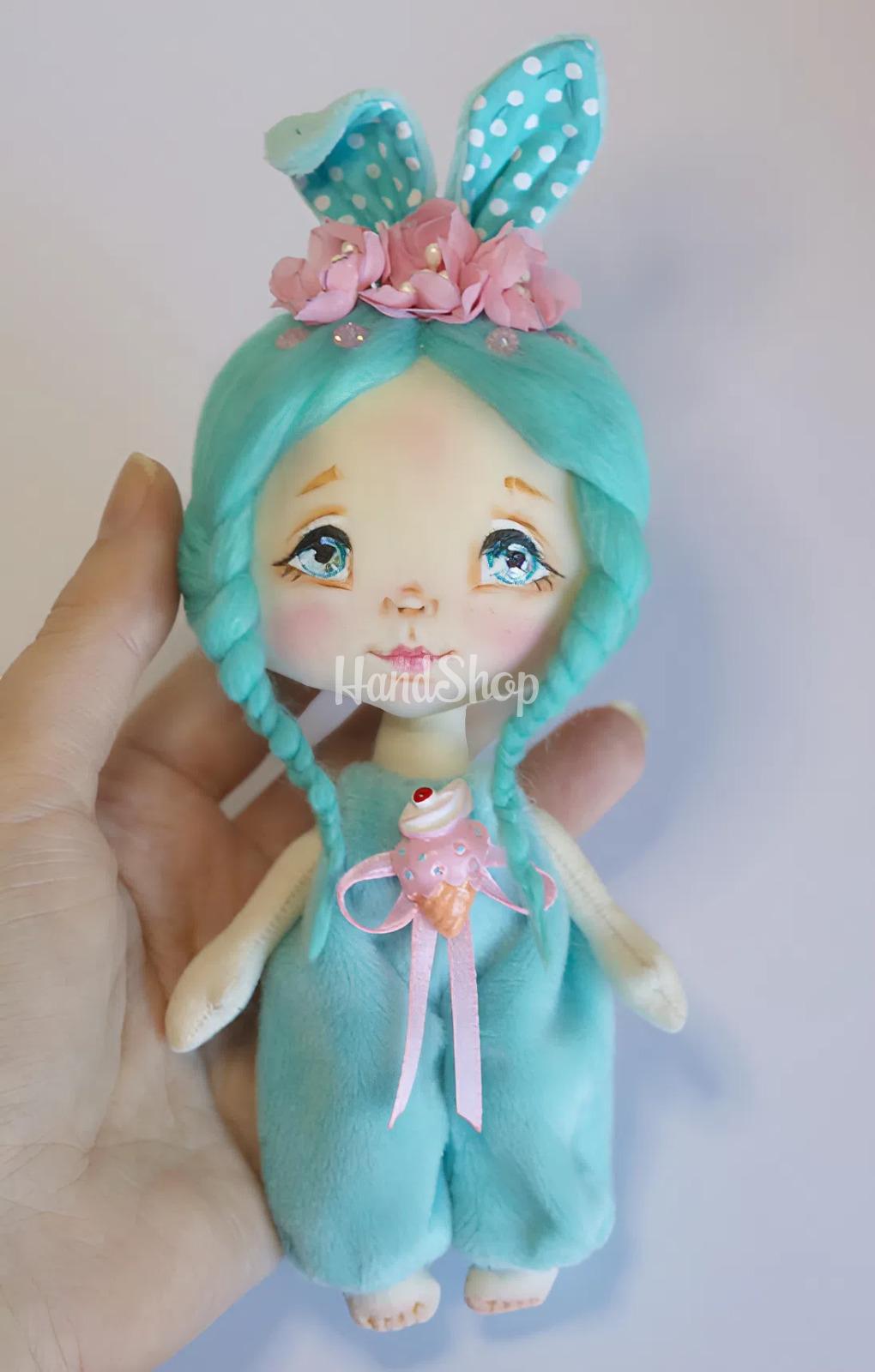 Особенности: детские куклы ручной работы — мини кукла своими руками с ростом до 15 см. Детская игрушка игрушка выполнена в образе девочки зайки с бирюзовыми косичками в плюшевом комбинезоне, украшенным мороженым из полимерной глины и ушками с розовым. Игрушечная кукла текстильная зая имеет расписное личико, розовые волосы с прической — две косички, украшенные розовыми цветочками ручной работы, придающие ей еще большую привлекательность. Уникальность этой куклы в комбинезоне – в ее дизайне: одежда комбинезон из плюша не снимается, что делает ее еще более устойчивой и удобной для игры. Мини-кукла с косичками может стоять с опорой, что придает возможность для создания разнообразных поз. Высотой до 15 см, эта детская игрушка в образе волшебной зайки сказочной красавицы станет отличным другом для вашего ребенка. Кукла выполнена из мягкого текстиля, что делает ее приятной на ощупь и безопасной для малышей. Кукла текстильная в комбинезоне – это идеальный подарок, который подарит радость и улыбки!