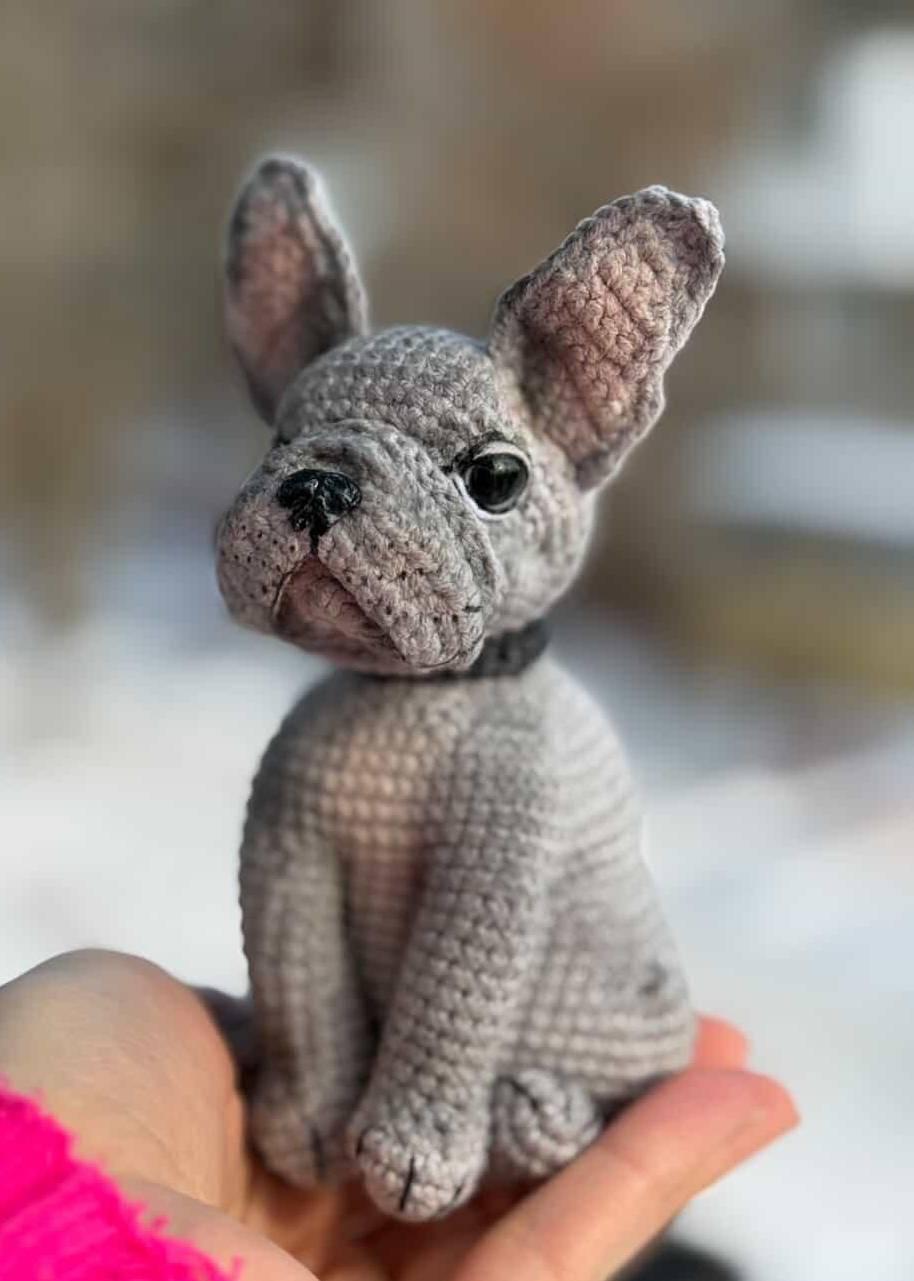 Особенности: вязаные игрушки крючком ручной работы – сувенирная маленькая игрушка серый пес французский бульдог 13 см, созданная с любовью, теплом и вниманием к каждой детали. Это не просто игрушка, а настоящий миниатюрный друг с нравом. Бульдог игрушка выполнен в глубоких серых оттенках, придающих ему элегантный и благородный вид. Деликатная тонировка сухой пастелью подчеркивает форму, придает песику бульдогу объему и делает образ максимально реалистичным. Благодаря этому собачка игрушка выглядит живой, будто вот-вот подмигнет или смешно наклонит голову. Игрушка серый бульдог самостоятельно стоит, что делает ее идеальным элементом декора для дома, рабочего стола или коллекции игрушек. Компактный размер позволяет легко разместить бульдога в любом месте, добавляя просторную уют и стиль. Серый французский бульдог игрушка станет отличным подарком для любителей собак, ценителей ручной работы и тех, кто ищет оригинальный, душевный сувенир. Каждая игрушка серый бульдог – уникальна, ведь создана вручную с особым вниманием к настроению и характеру. Маленький размер игрушки – большое сердце и настоящий французский шарм.