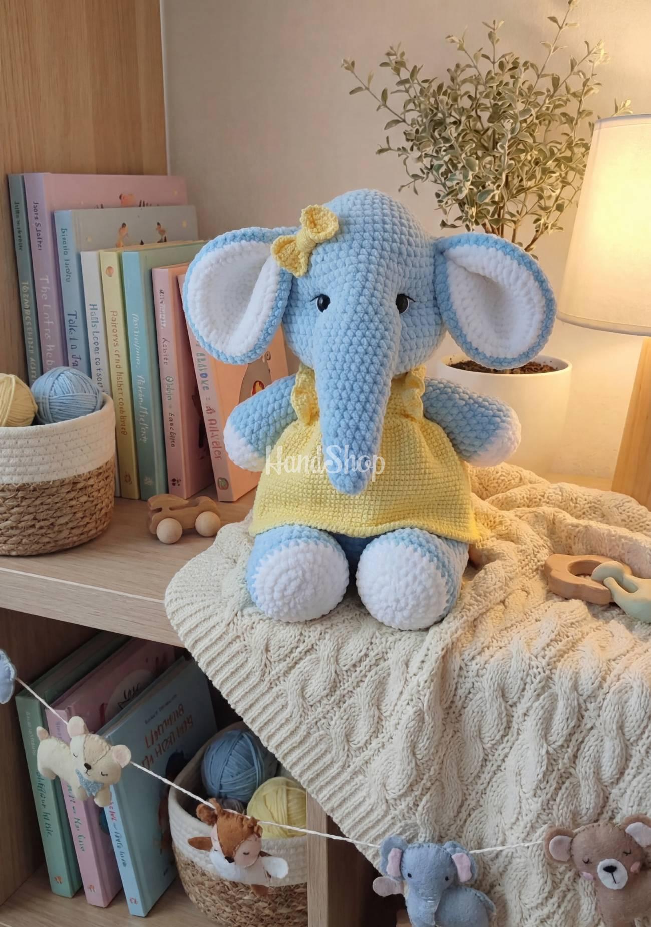 Особенности: мягкие игрушки слоники авторские — красивый большой плюшевый слоник до 33 см стоя. Вязаная игрушка слон в образе красавицы девочки в голубо-желтой гамме. Игрушка слон может стоять и сидеть только с поддержкой. Слоник игрушка с подвижными ручками и ножками. Игрушка слоник в платье – трикотажная игрушка крючком слоник в голубом цвете и желтом платье – снимается! Мягкая игрушка слоненок сувенир — это настроение и особый презент в День Влюбленных! Предлагаем оригинальный подарок – большую игрушку плюшевого слоника девочку в платье в образе украиночки. Мягкая игрушка слоник обрадует и очарует не только детей, но и взрослых! Наша авторская волшебная игрушка-слоник в платье привлекает внимание своей уникальностью и красотой. Выполненная в цветах Украины, эта игрушка не только поражает внешним видом, но и имеет глубокий символический смысл, напоминающий о красоте и богатстве украинской культуры. Она станет отличным подарком как для ребенка, так и для коллекционера, ценящего красоту и утонченность.