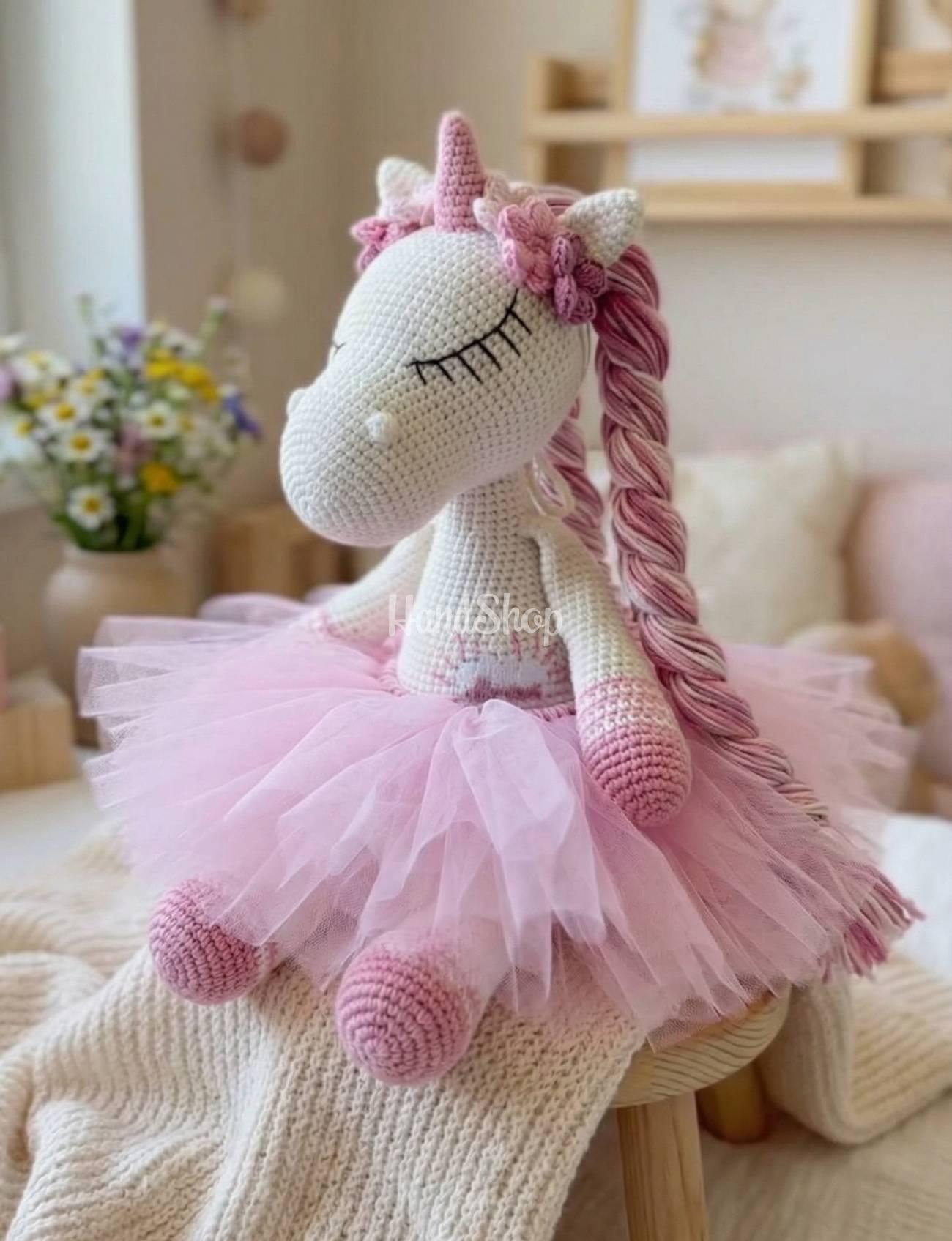 Особенности: мягкая игрушка вязаный единорог – авторская игрушка девочка единорожка. Игрушка в образе единорожки, носящая розовую юбку, как у настоящей балерины, сочетает в себе магию и грацию. Размер игрушки – 40 см. Ее длинные розовые косички с цветочками созданы из хлопчатобумажной розовой пряжи, что делает ее еще более милой и нежной. Вязаная игрушка единорожка – мягкие игрушки сказочные герои для девочки может стоять и сидеть только с поддержкой. Мягкая игрушка девочка единорожка украшена белым сердечком с вышитым именем будущей обладательницы — ВЫШИВАЕМ ПО-ЖЕЛАНИЮ! Это позволит сделать подарок еще более уникальным и персонализированным, что делает его идеальным для любого важного события, как день рождения или праздничные подарки. Игрушка единорожка с подвижными ручками и ножками, что придает ей еще больше очарования и позволяет создавать разные позиции для игры. В единорожке глаза на безопасном креплении. Изготовленная из высококачественной хлопчатобумажной пряжи, эта игрушка единорожка в юбочке не только мягкая на ощупь, но и безопасна для детей. Эта волшебная игрушка станет незабываемым подарком для каждой девочки, мечтающей о чудесах, балетах и сказочных существах. Эта вязаная игрушка единорожка станет отличным подарком для каждой девочки, которая любит сказки, балет и мечтает о волшебных существах. Она поможет создать атмосферу магии, научит любви к рукоделию и будет развивать воображение. Пусть ваша принцесса узнает мир чудес вместе с этой замечательной игрушкой, которая станет ее надежным другом и спутником в мире фантазий.
