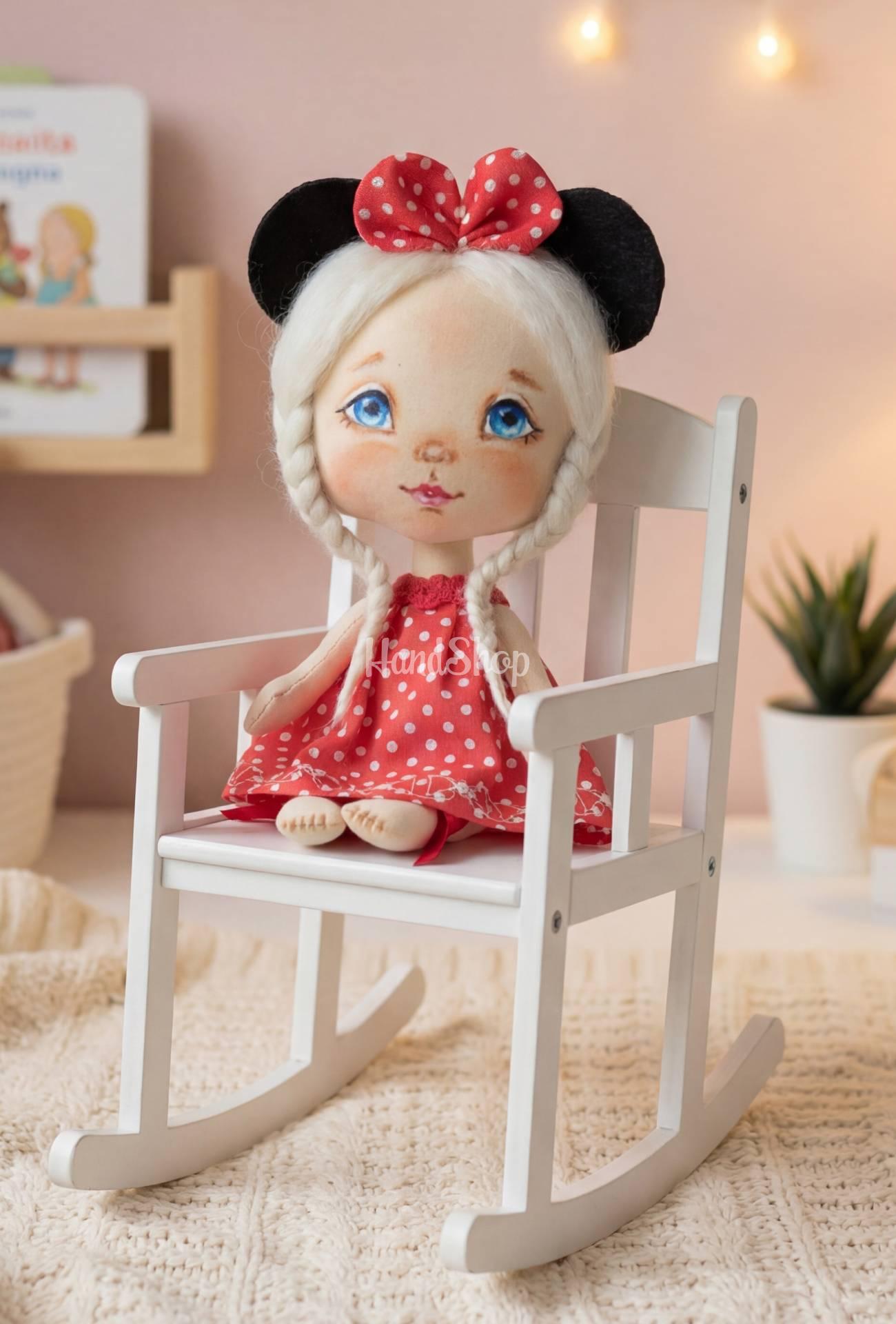 Особенности: детские куклы ручной работы – мини кукла своими руками ростом 15 см в образе популярного мультяжного персонажа девочки Минни Маус в ободке. Детская игрушка кукла выполнена в сказочном образе – маленькой куклы Минни с белокурыми волосами. Мини куколка одета в пышное красное платье в белом горохе. Авторская кукла с белокурыми волосами и большими глазами – рисованные акриловыми красками. В мини куколке одежда не снимается! Куколка своими руками стоит с опорой! Детские куклы для девочек в индивидуальном экземпляре! Мини куколки своими руками – приятные праздничные сувениры любимым! Мини кукла Минни Маус не только игрушка, она подсказка для ребенка в развитии творческого мышления. Она вдохновляет на создание воображаемых миров и сказочных историй. Пусть каждый момент игры с мини куклой Минни Маус станет для вашего ребенка самым ценным воспоминанием, а сказочные игры станут особыми моментами их детства! Подарите им часть сказки и откройте для них безграничный мир воображения вместе с мини куклой ручной работы Минни Маус!