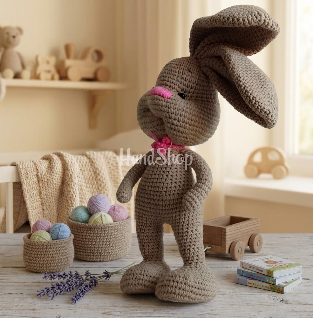 Особенности: игрушка зайка — зайка мягкая игрушка своими руками стоит и сидит с поддержкой. Игрушка зайка может и сидеть, но основное положение — стоя с опорой! Бежевый зайка игрушка с подвижными ручками и ножками. Зайчик игрушка — вязаные игрушки крючком 36 см в светло-коричневом цвете из хлопковой пряжи. Забавная новогодняя мягкая игрушка зайка с розовым носиком и большими ушками (можно расправлять в любые стороны) — порадует как детишек, так и взрослых! Зайчики игрушки — это особенный презент на День Влюбленных! Предлагаем нежный подарок — зайку!