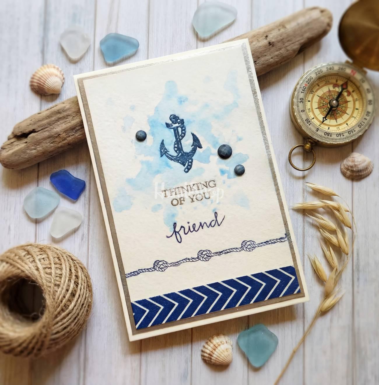 Особенности: открытка авторская ручной работы в морском стиле с надписью на английском языке: «THINKING OF YOU friend». Стильная мужская хендмейд открытка подойдет к любому праздничному событию и мероприятию для вашего лучшего друга. Дарите открытки авторские — открытки ручной работы — оригинально выражая ваши чувства настоящим друзьям!