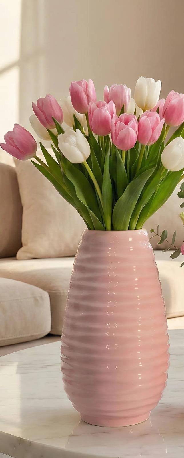 Розовая большая фарфоровая ваза ручной работы для цветов