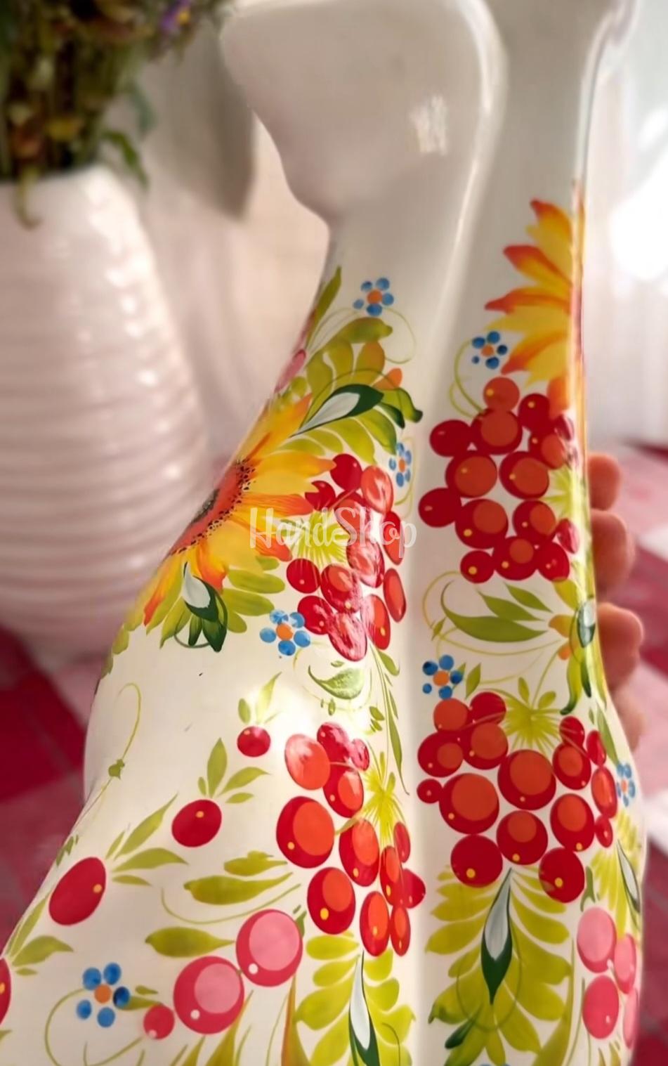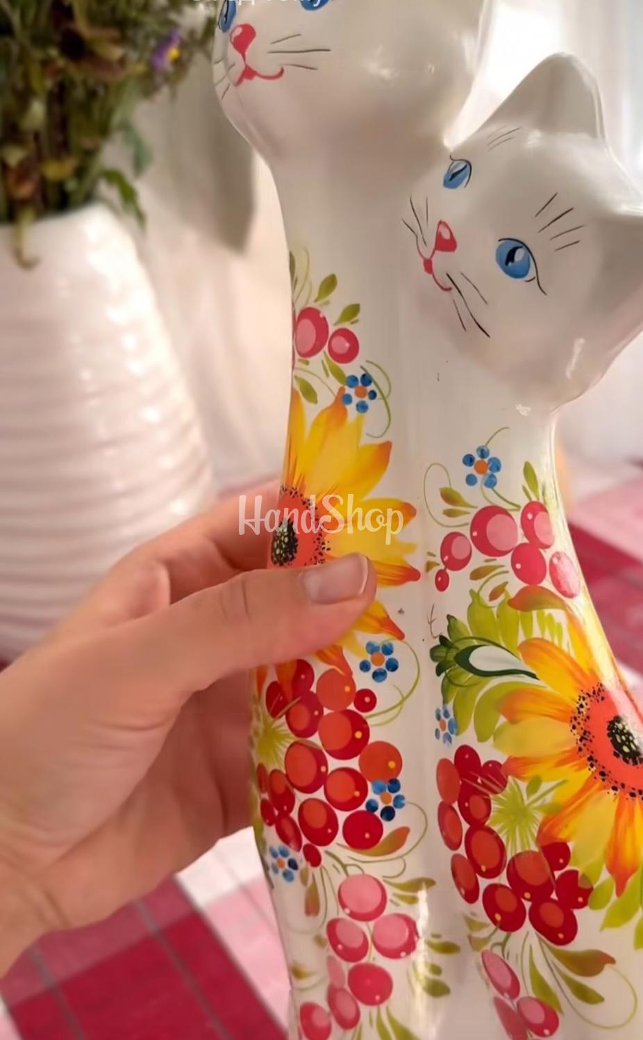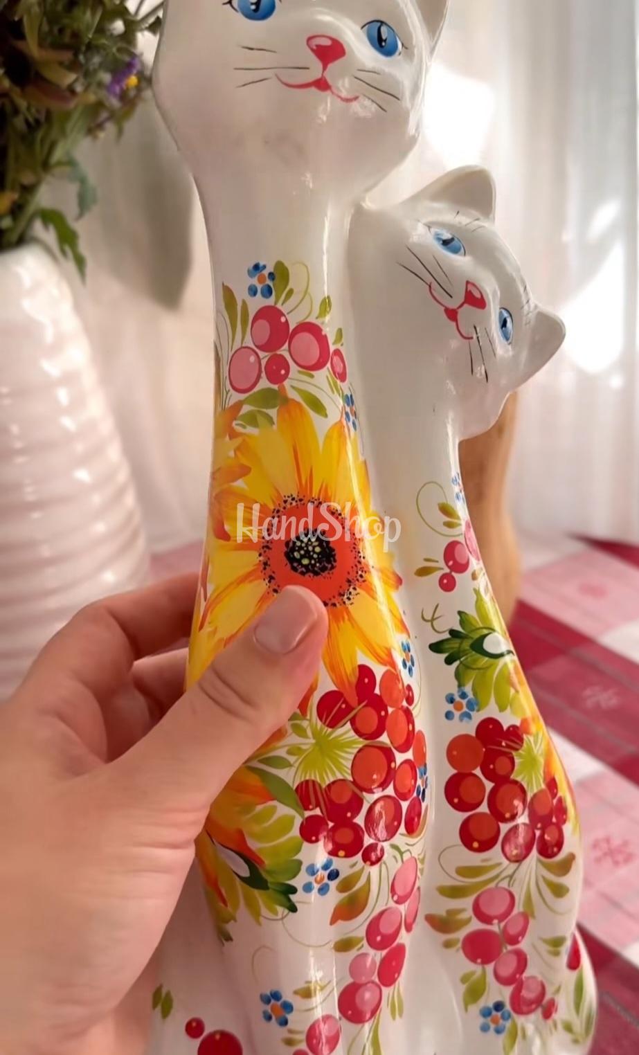 Особенности: керамическая ручная работа – керамика собственного производства в виде сувенирной пары белых котиков с петриковской росписью. Изысканная пара белых кошек высотой 32 см – это не просто сувенир, а настоящий символ гармонии, любви и домашнего уюта. Каждый котик создан вручную из качественной керамики и расписан в традиционной цветочной тематике петриковской росписи – украинского народного искусства, поражающего своей яркостью и неповторимостью. Каждый цветочек, каждый мазок кисти – авторская ручная работа мастера, вкладывающего в изделие душу и вдохновение. Благодаря уникальной петриковской росписи, ни одна пара котиков не бывает одинаковой – каждая из них имеет собственный характер и настроение. Эта подарочная керамика кошки станет отличным акцентом в любом интерьере – от современного до этнического – и идеальным подарком для коллекционеров, ценителей украинской культуры или просто для тех, кто любит красоту и тепло ручной работы. Керамическая пара котиков идеально подойдет к подарку за границу, добавляя красоты и изысканности в любое жилище. Необычный дизайн котиков из керамики обеспечит оригинальный декор любого мероприятия.