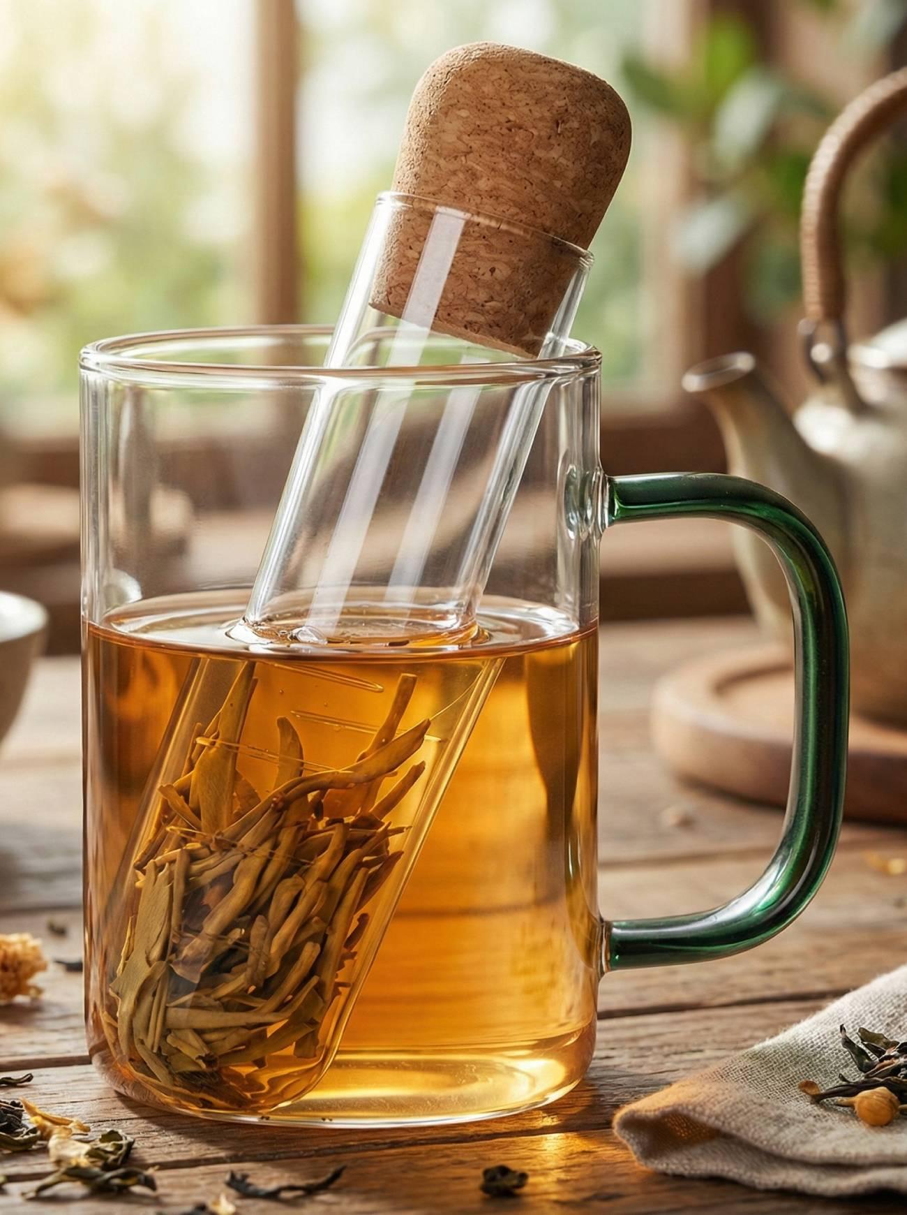 Стеклянный фильтр для заваривания чая с пробковой крышкой