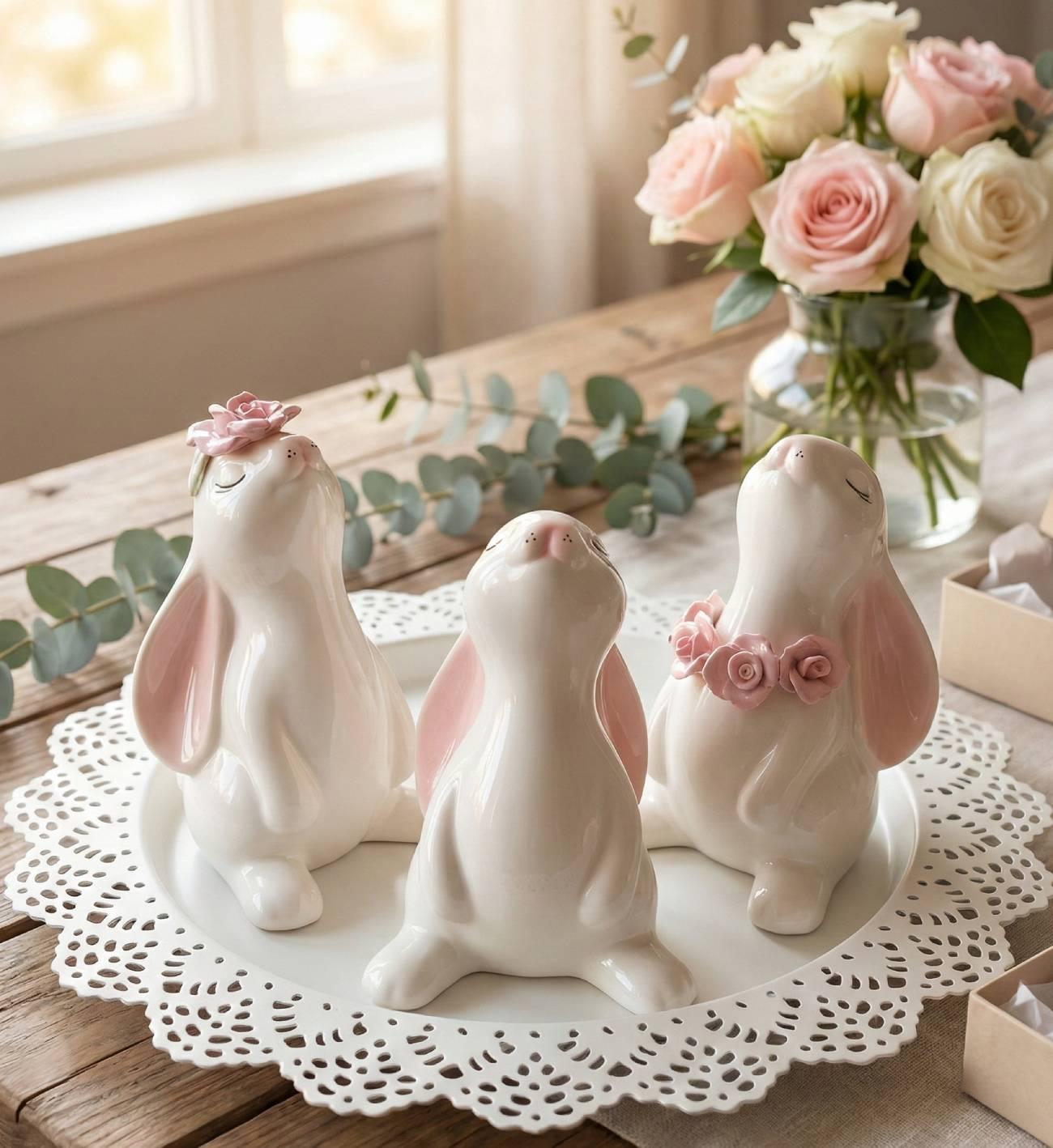 Особенности: авторские декоративные белые фарфоровые кролики, фарфор ручная работа. Подарочный сувенирный набор фарфоровых кроликов на праздник. Белые зайчики подарочные фарфор с размерами – высота по 16 см. Декоративные белые фарфоровые зайчики – девочка зайчик с розовыми цветочками бусами, мальчик зайка и девочка зайчик с розой – это отличный детский сувенир на праздник. Фарфоровые кролики созданы вручную с использованием фарфора. Их изящный дизайн и чистый белый цвет делают их идеальным выбором для любого интерьера. Эти небольшие кролики могут быть как хорошим подарком для вашего ребенка, так и украшением комнаты или детской комнаты. Наши авторские фарфоровые зайки сувениры точно привлекут внимание своей красотой и изысканностью, и будут приятными дополнительными деталями к вашему дому или офису.