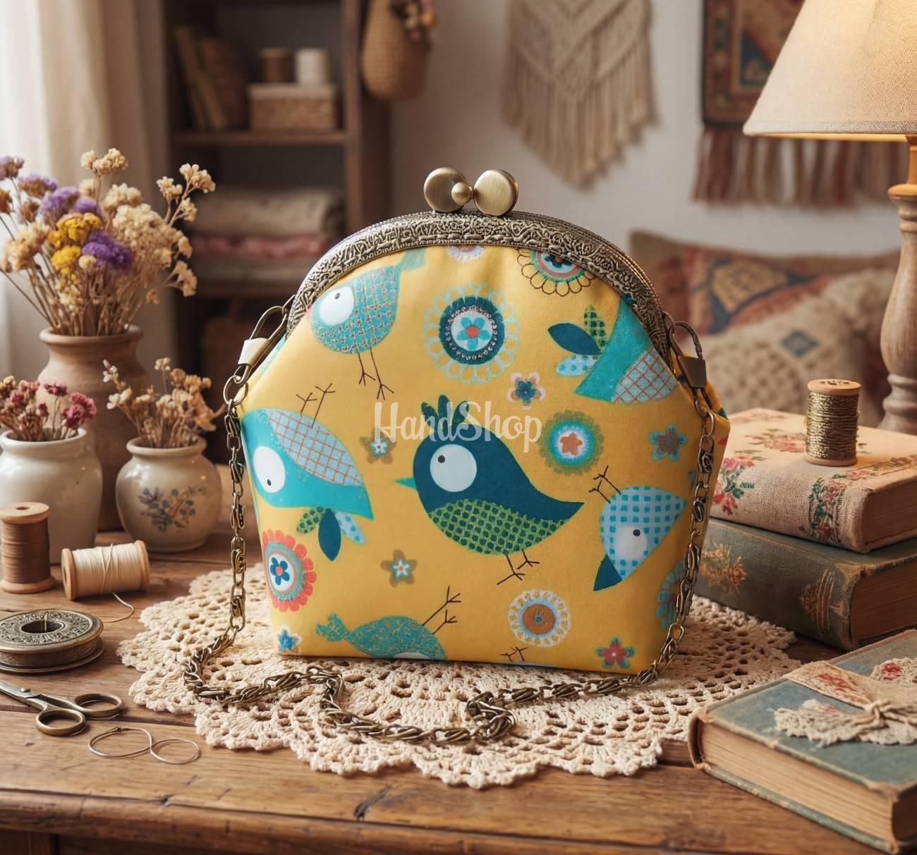 Особенности: детская сумочка из ткани – маленькая яркая летняя сумочка своими руками на фермуаре 9,5 см – надежное и стильное застегивание в ретро-стиле. Летняя детская сумочка в желтой гамме с принтом – милые маленькие птички. Детская сумочка ручной работы полукруглой формы с вместительными габаритами – 11,5×10,5 см. Авторская мини-сумочка ручной работы плотно проклеена и хорошо держит форму. Детская сумочка с фермуаром – стильная часть гардероба и эксклюзивный презент! Милая, яркая и удобная – эта авторская детская сумочка на фермуаре создана для маленьких модниц! Изготовленная с любовью из ткани в желтой цветовой гамме с принтом милых птиц, она станет любимым аксессуаром для прогулок, праздников или фотосессий. Желтая сумочка косметичка – идеальна как оригинальный подарок на день рождения, праздник или просто знак заботы. Подойдет для хранения безделушек, детских украшений, маленьких игрушек или даже первых «сокровищ».
