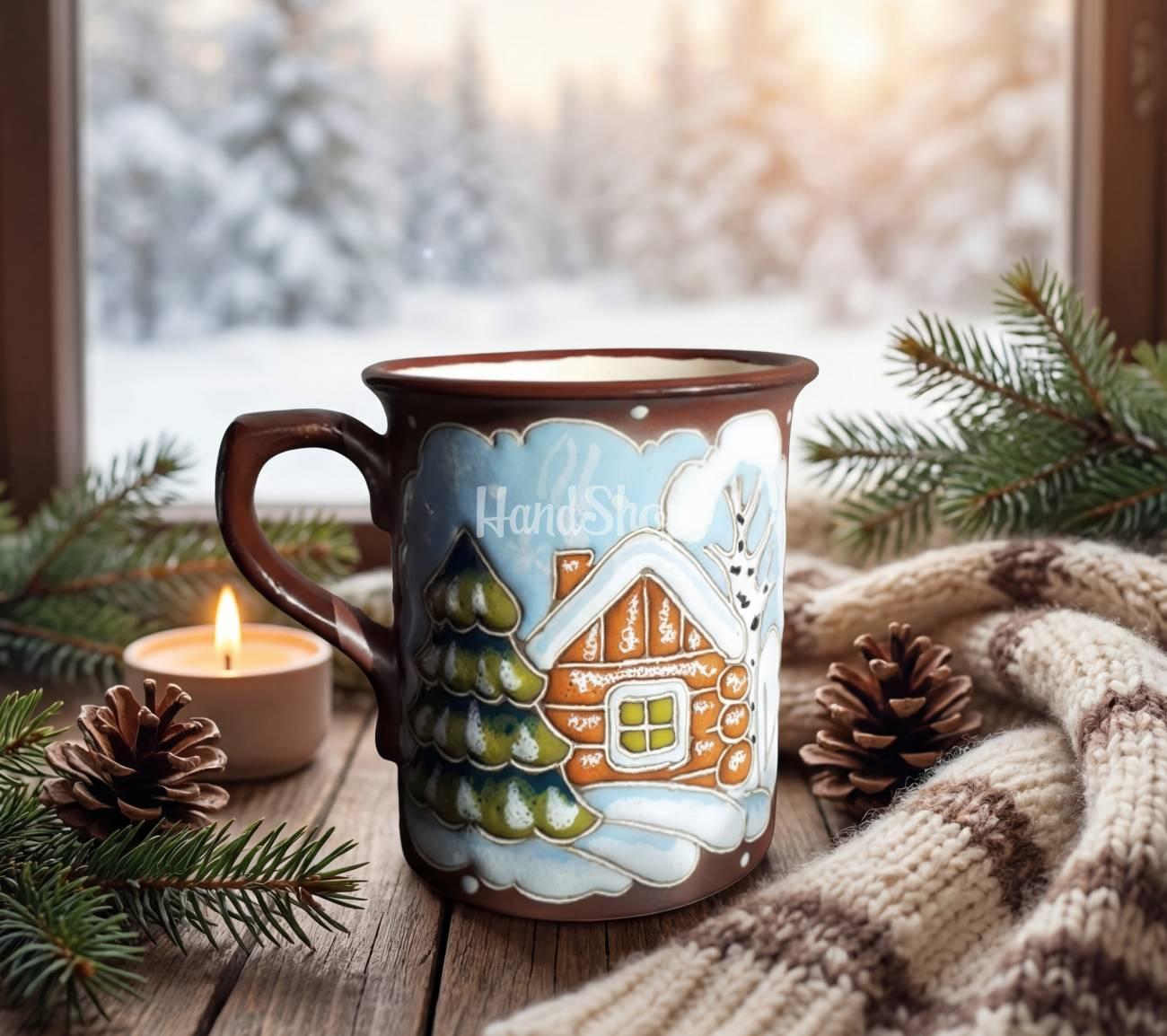 Особенности: керамическая посуда – новогодняя сувенирная чашка 300 мл с ручной росписью – заснеженный домик в лесу. Керамическая чашка ручной работы в зимнем стиле. Ручная роспись чашки с елками, березками и уютным домиком, погружающим в атмосферу зимней сказки. Чашка из глины зима 2025 с размерами: диаметр мм: 85; высота, мм: 90; емкость, мл: 300. Чашка изготовлена из натуральной глины, что обеспечивает долговечность и сохранение тепла напитков. Почувствуйте магию новогодних праздников с нашей уникальной сувенирной чашкой объемом 300 мл, изготовленной вручную! Эта керамическая чашка, украшенная нежной росписью заснеженного домика среди зимнего леса, станет настоящим акцентом в вашей кухне. Подарите себе или своим близким частицу зимнего чуда! Эта сувенирная зимняя чашка станет не только стильным дополнением вашего праздничного стола, но и отличным подарком для друзей и родных. Не упустите возможность привнести в дом атмосферу уюта и тепла! Заказывайте уже сегодня!