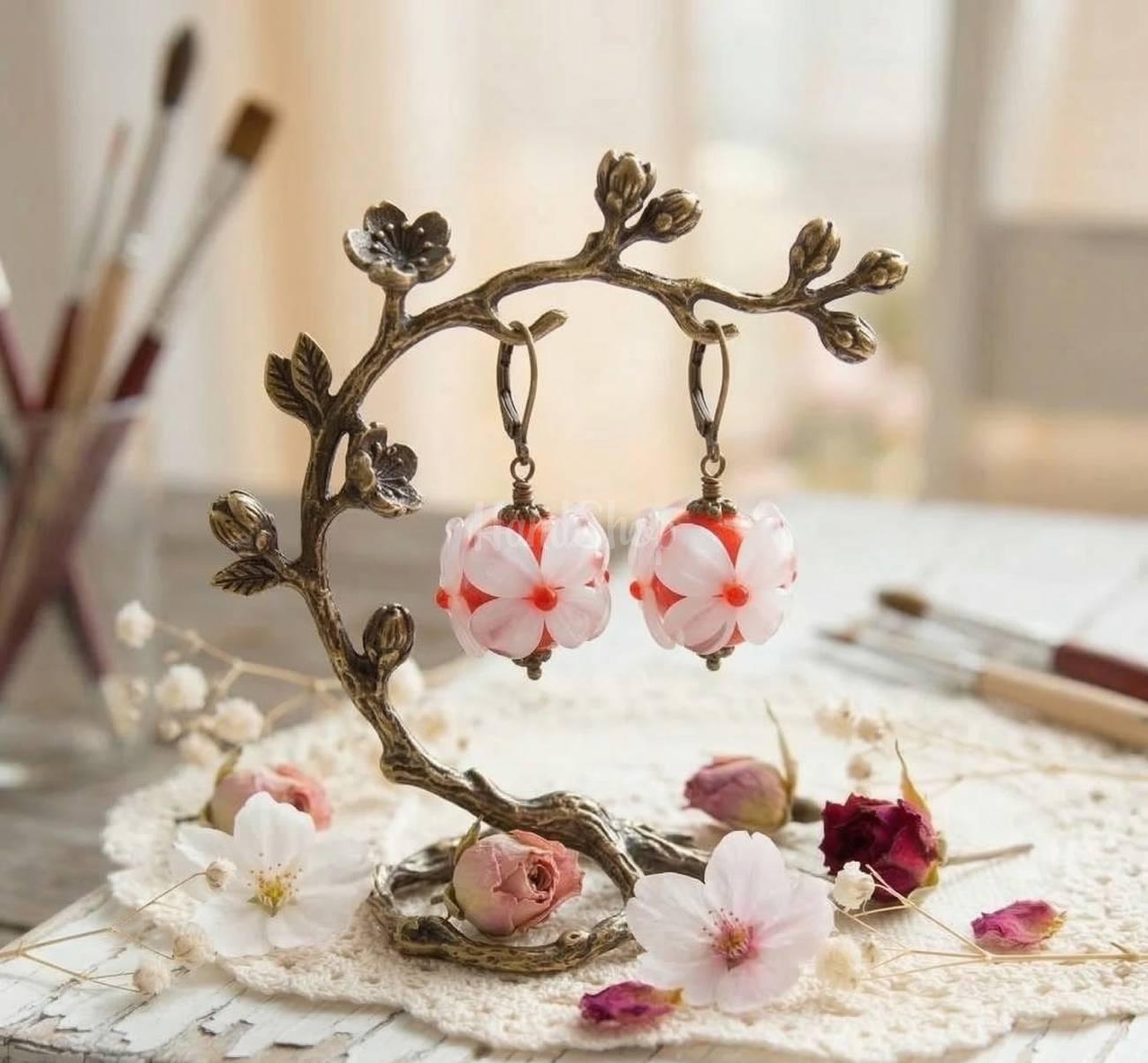 | Материал | Металлическая фурнитура, Стеклянные бусинки Лэмпворк |
