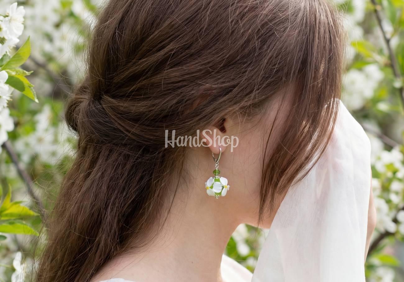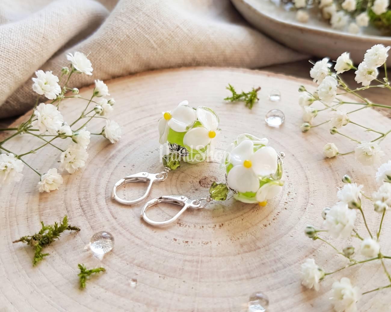 Особенности: украшения лемпворк ручной работы – авторские бусины со стекла цветочным узором 1,7 см в нежной салатово-белой гамме – полевые цветы ромашки. Серьги цветы ромашки длиной 4,2 см из бусины lampwork, стекла и металлической фурнитуры под серебро. Лемпворк цветы ромашки – это очень женственно, ярко и стильно! Подчеркните свою индивидуальность и элегантность с нашими уникальными украшениями лемпворк – женские серьги ромашки! Эти изысканные бусины ручной работы в нежных салатово-белых тонах с цветочным узором полевых ромашек (1,7 см) придадут особый шарм любому образу. Серьги с лемпворком бусинами, длиной 4,2 см, изготовлены из стекла и металлической фурнитуры под серебро, создают отличный акцент для вашего стиля. Ярко, женственно, стильно – эти украшения идеально подходят для бизнес-леди, ценящей оригинальность и утонченность. Лемпворк серьги цветы ромашки станут вашей изюминкой в образе, и подчеркнут вашу неповторимость. Создайте собственный поражающий стиль!