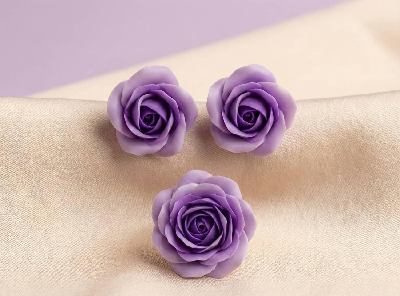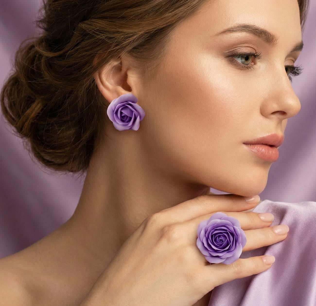 Набор из полимерной глины серьги и кольцо лиловые розы