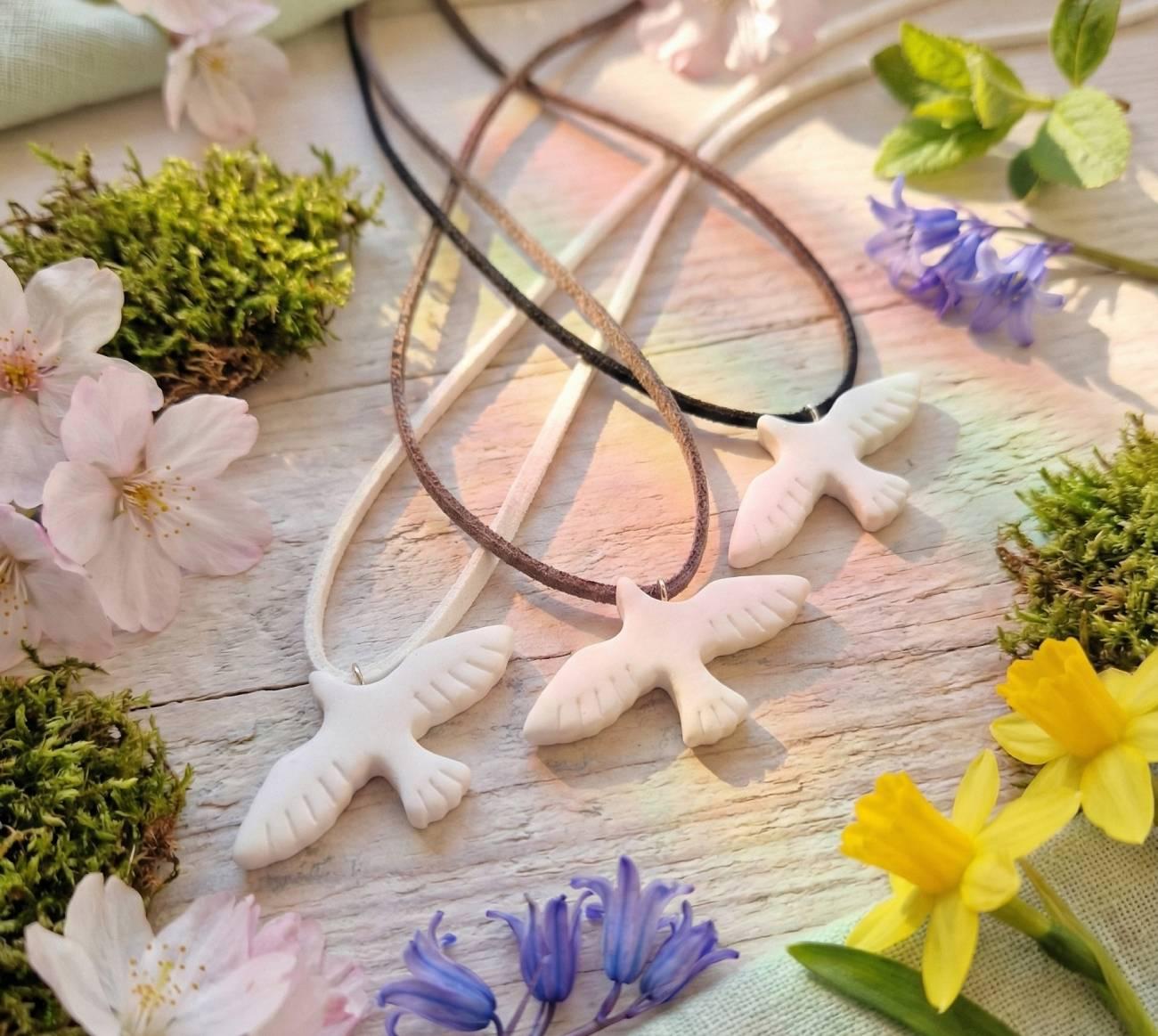 Особенности: украшения ручной работы – красивый кулон из полимерной глины с белой голубкой ручной работы. Кулон голубка размером 4 х 2,2 см белого цвета с вкраплением блесток на длинном замшевом шнурке 150 см. Украшения бижутерия кулон в виде белой голубки мира на гипоаллергенной фурнитуре – это красиво, модно и патриотично. Красивые белые голубки на каждом аксессуаре символизируют мир, гармонию и верность. Эти украшения голубки подойдут как на ежедневное ношение, так и для особых случаев, когда вам нужно добавить образ романтики и нежности. Каждая горлица изготовлена с особым вниманием к деталям, что делает ее не просто украшением, а подлинным творением искусства. Полимерная глина позволяет сохранять естественный блеск и цвет в течение длительного времени. Этот кулон белая горлица с вкраплением блесток станет отличным подарком для близкого лица или настоящим украшением для вас самих, дополнив ваш стиль нотками романтики и изысканности.