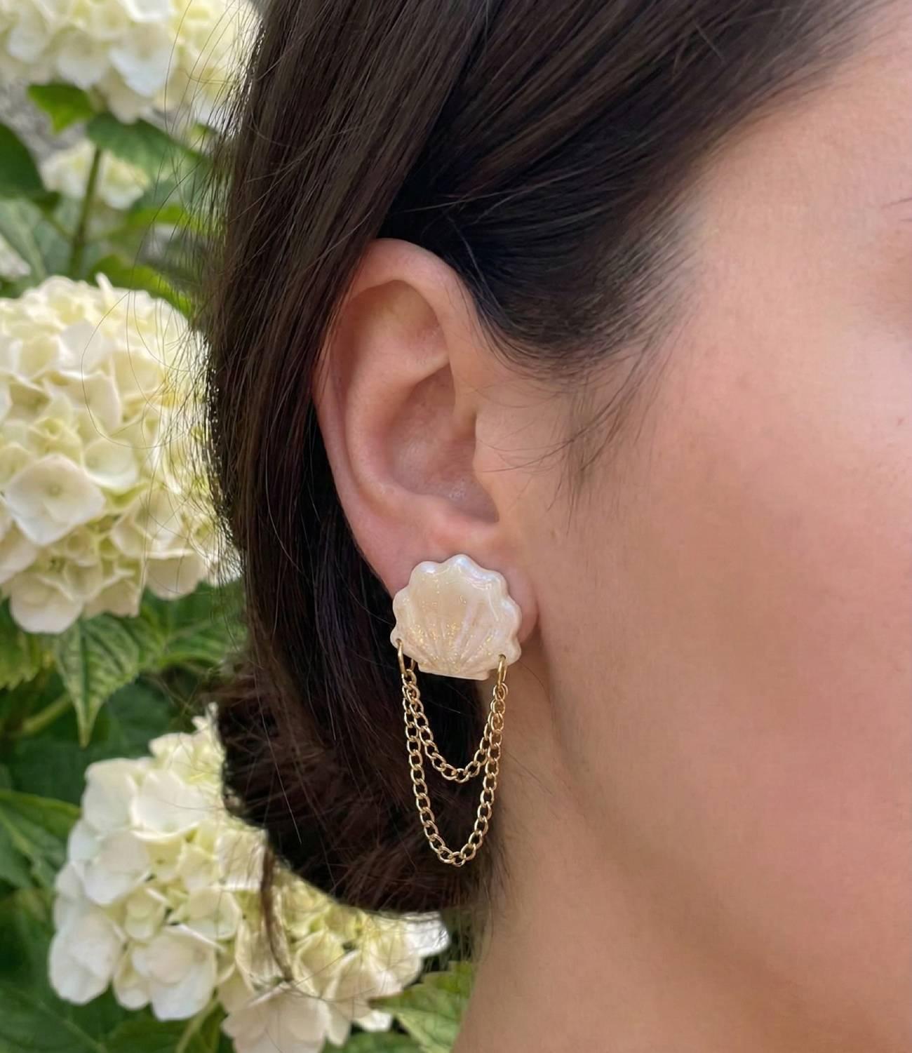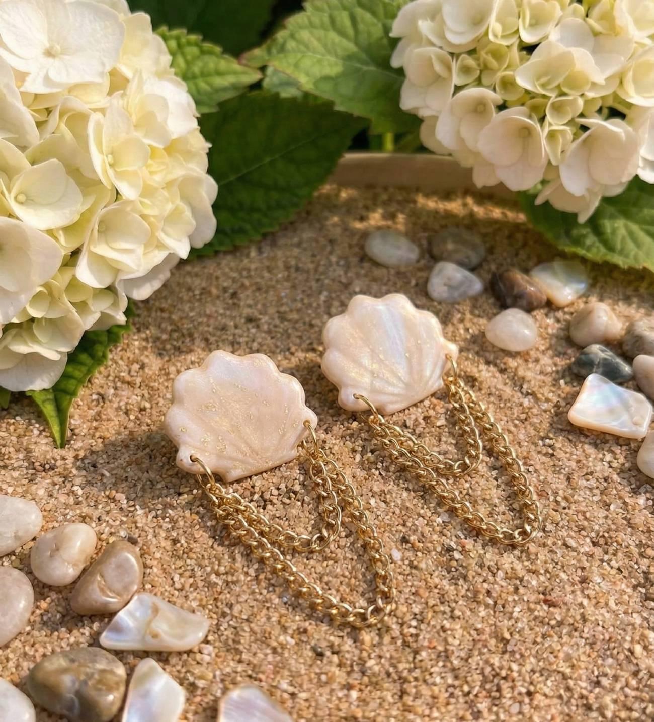 Особенности: серьги ручной работы – летние женские морские авторские серьги из полимерной глины в форме маленькой золотой ракушки из полимерной глины, украшенные золотыми цепочками, придающими серьгам особую элегантность и природную красоту. Эти серьги ракушки 3,8 см, что позволяет им хорошо вписаться в любой образ, не будучи слишком заметными, но в то же время добавляя выразительности в бежево-золотой палитре прекрасно подходят для теплых летних дней, добавляя легкости и утонченности. Изготовленные вручную, эти морские серьги в форме маленьких ракушок выглядят невероятно нежно и изящно. Их украшение из золотых длинных цепочек придает серьгам роскошный блеск, делая их идеальными для любого торжественного или повседневного события. Добавьте немного морской магии к своему образу с этими очаровательными авторскими серьгами золотые ракушки, которые привнесут в вашу жизнь нотки элегантности, воздушности и природной красоты.