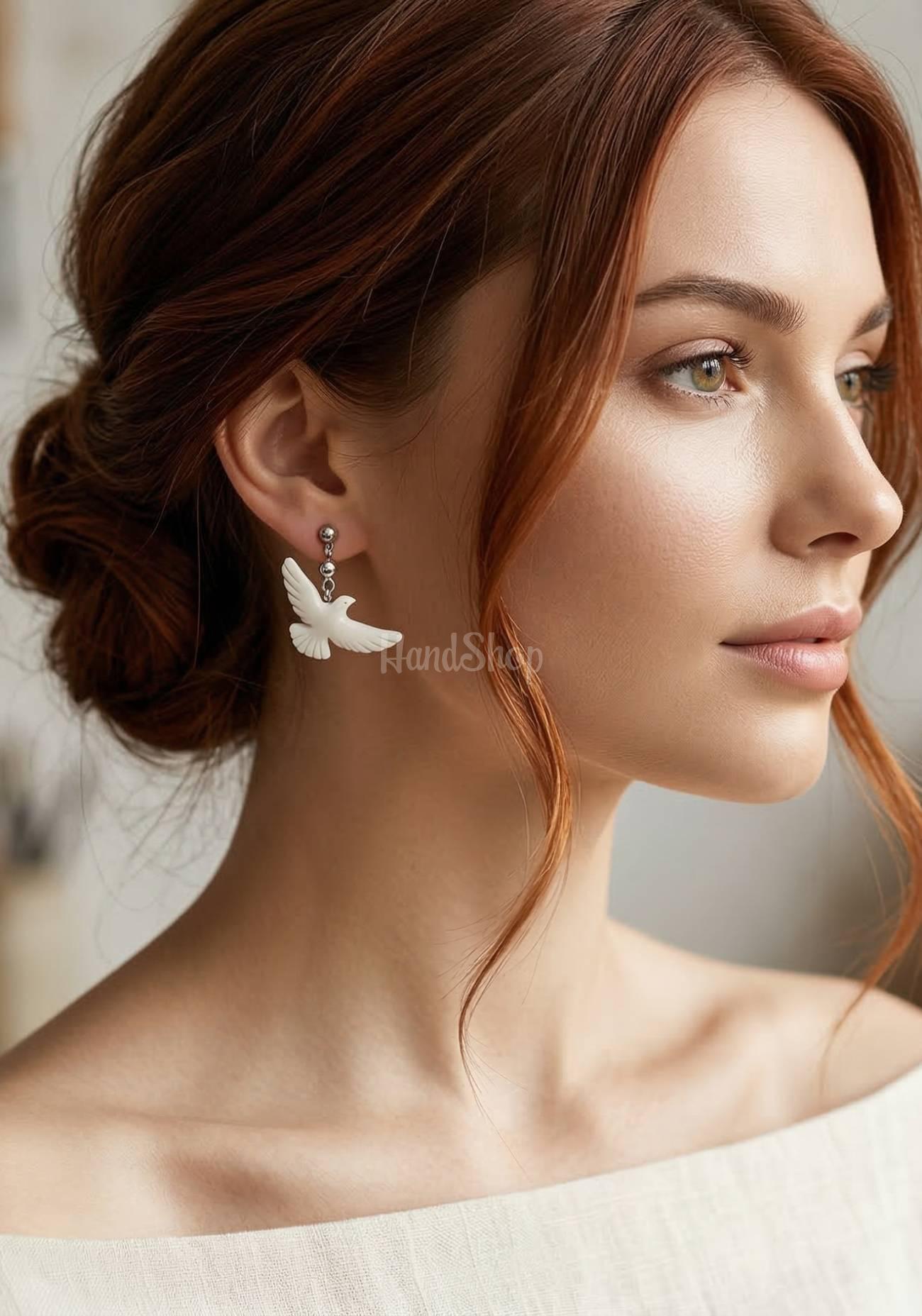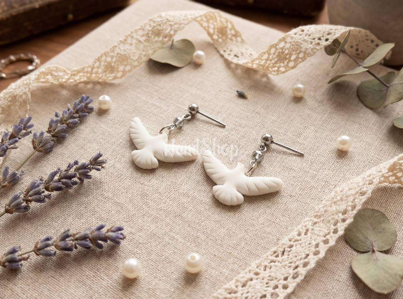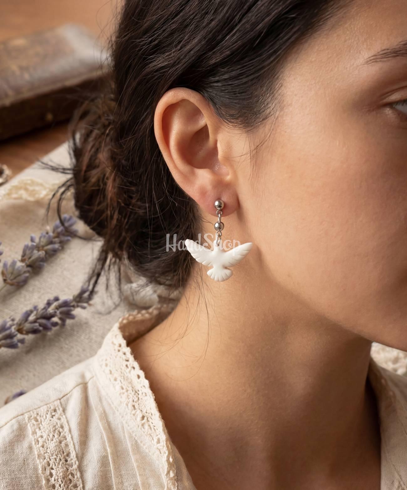 Особенности: украшения ручной работы – стильные серьги из полимерной глины с птичками белые горлицы. Женские белые серьги голубки 3 х 1,5 см на гипоаллергенной фурнитуре – гвоздики. Детализованные белые голубки на каждой серьге символизируют мир, гармонию и верность. Эти украшения голубки подойдут как на ежедневное ношение, так и для особых случаев, когда вам нужно добавить образ романтики и нежности. Каждый голубок изготовлен с особым вниманием к деталям, что делает его не просто украшением, а настоящим творением искусства. Полимерная глина позволяет сохранять естественный блеск и цвет в течение длительного времени. Серьги белая голубка станет отличным подарком для близкого лица или настоящим украшением для вас самих, дополнив ваш стиль нотками романтики и изысканности.