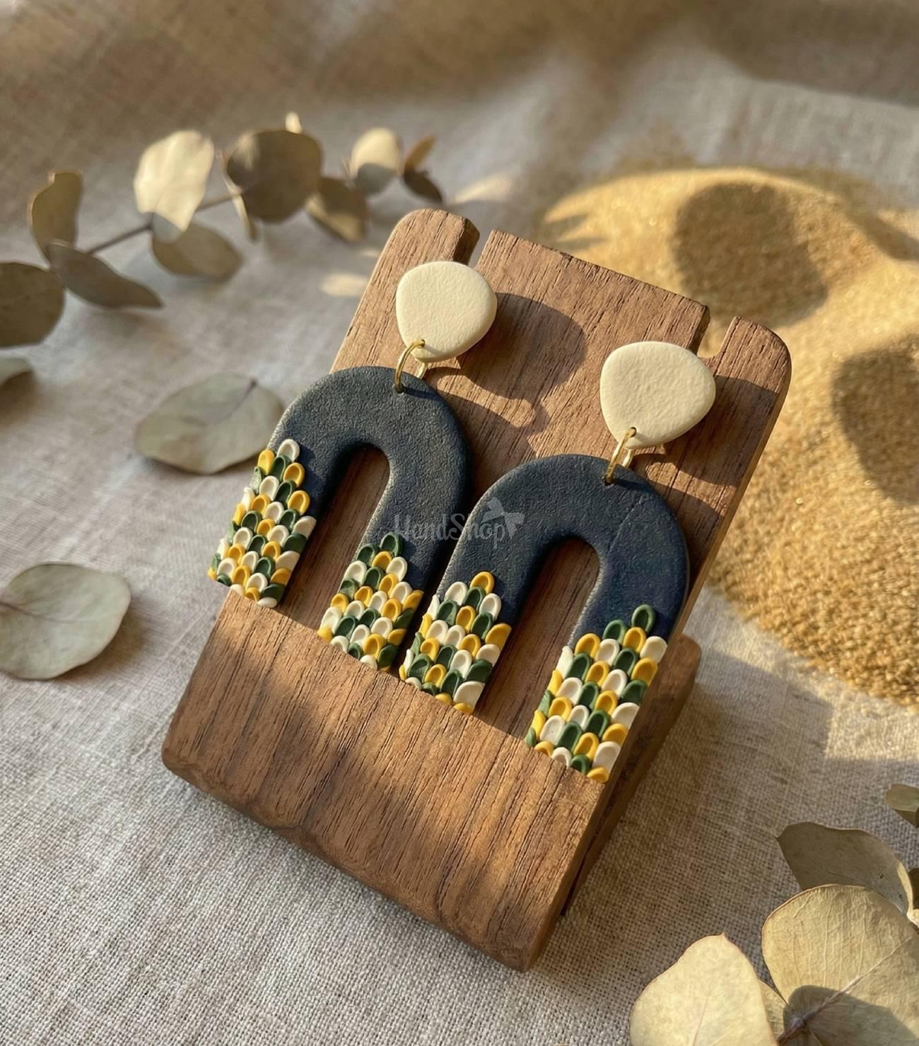 Стильные авторские женские серьги ручная работа глина