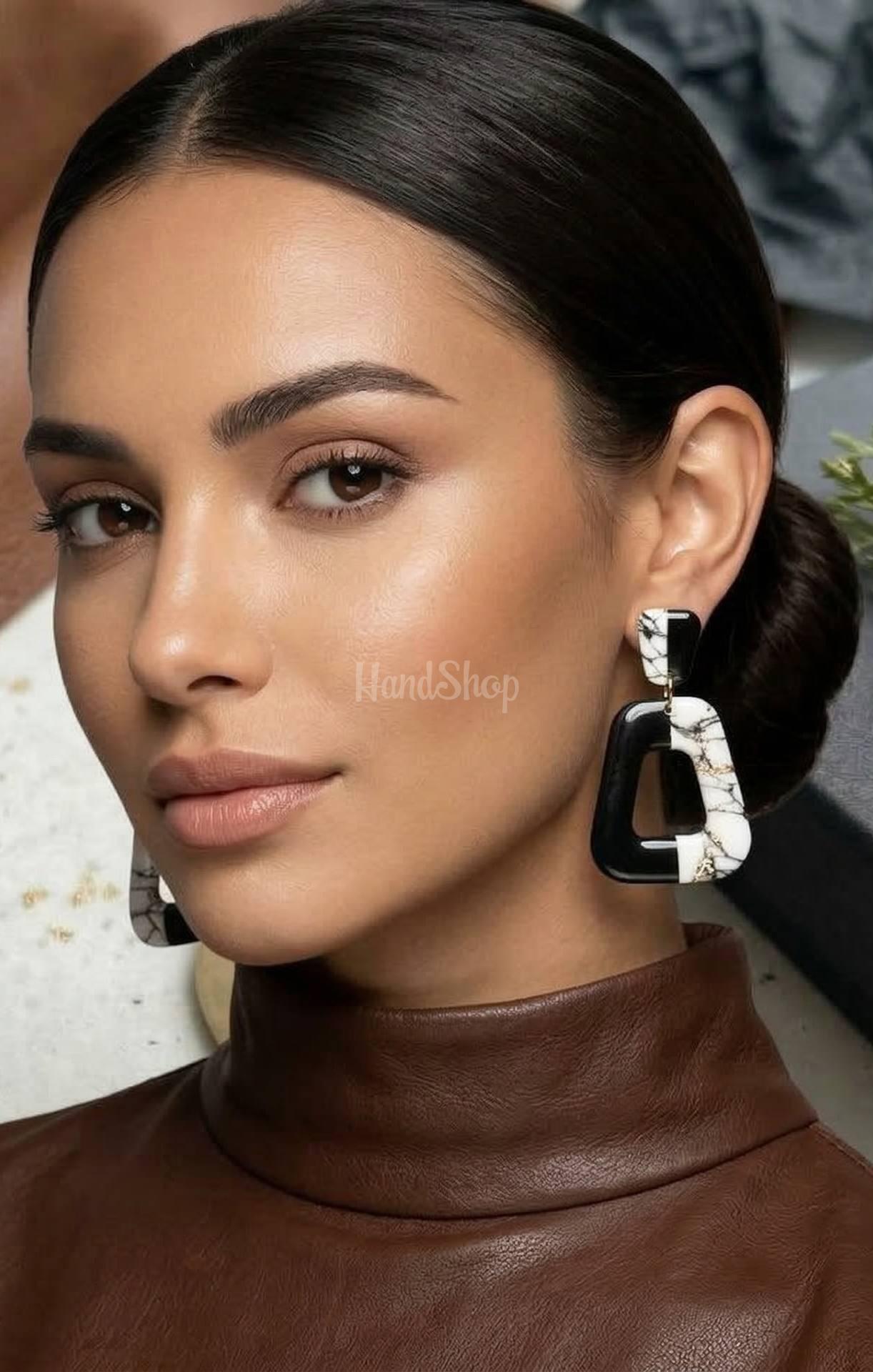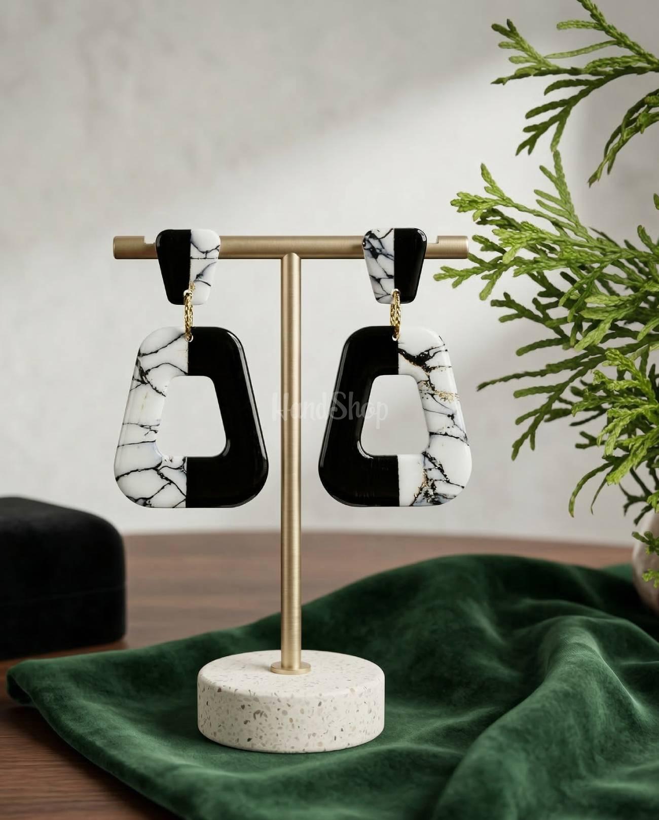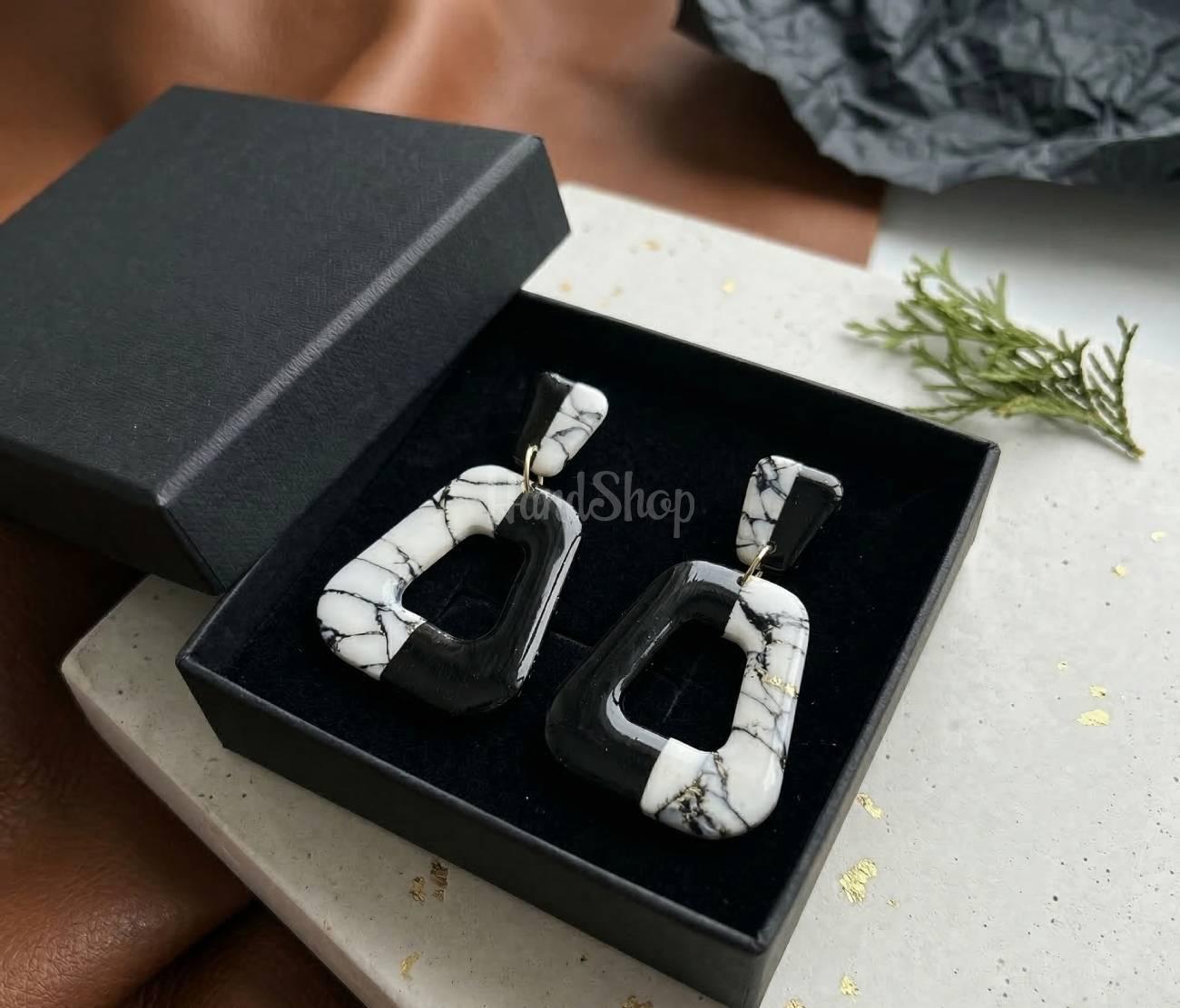Стильные геометрические черно-белые серьги из глины