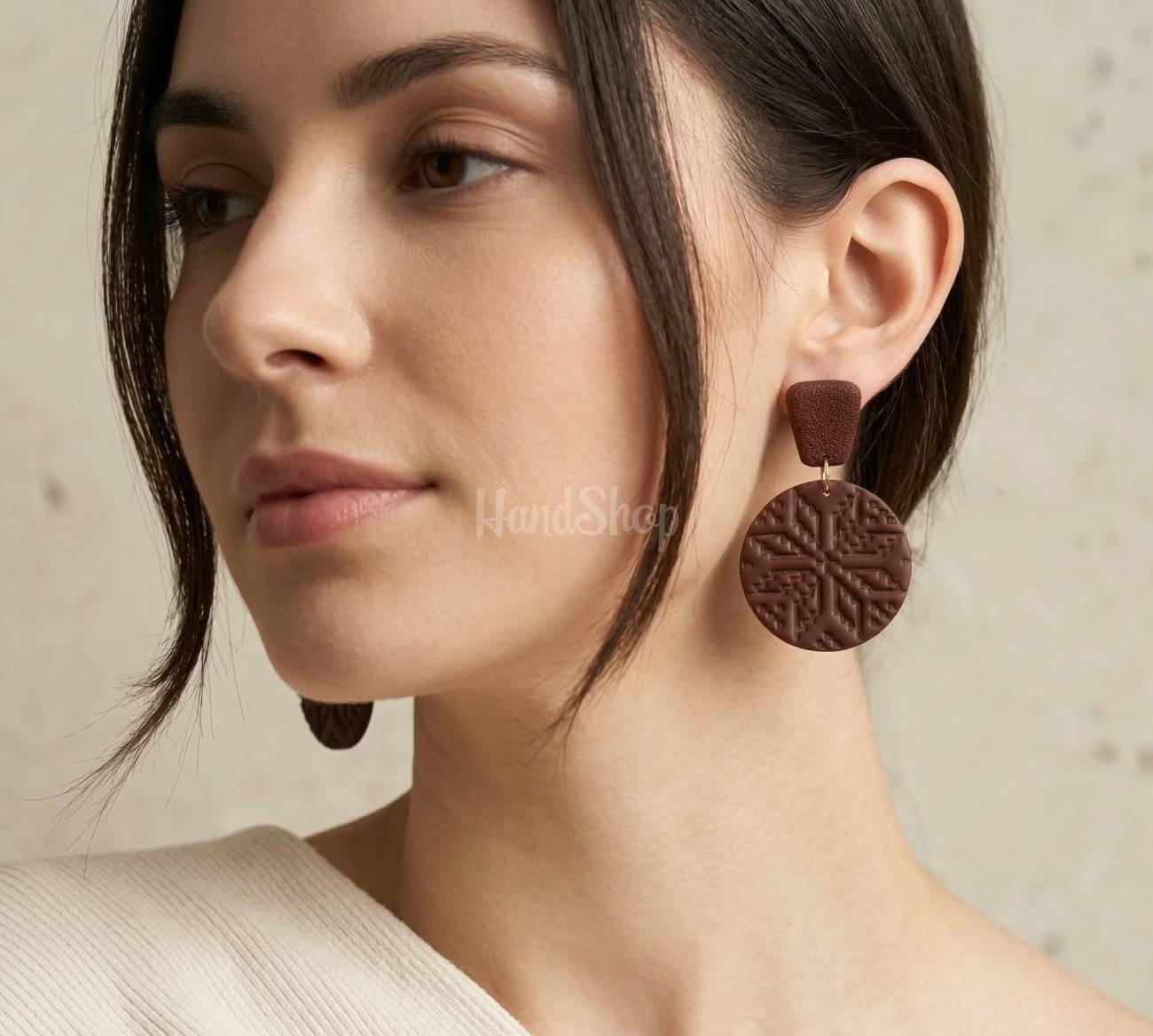 Особенности: серьги ручной работы – стильные коричневые серьги из полимерной глины в геометрической форме. Женские серьги своими руками среднего размера из полимерной глины с тиснением – узоры. Украшения серьги бижутерия на фурнитуре – нержавеющая сталь под золото – это очень красиво, изысканно и модно. Серьги из полимерной глины круглые в коричневой гамме дополнят ваш женственный и романтичный образ! Бижутерия серьги круглые коричневые – это эффектные и модные аксессуары украшения модниц из полимерной глины! Закажите наши круглые миниатюрные серьги и добавьте немного магии и стиля к своей жизни.