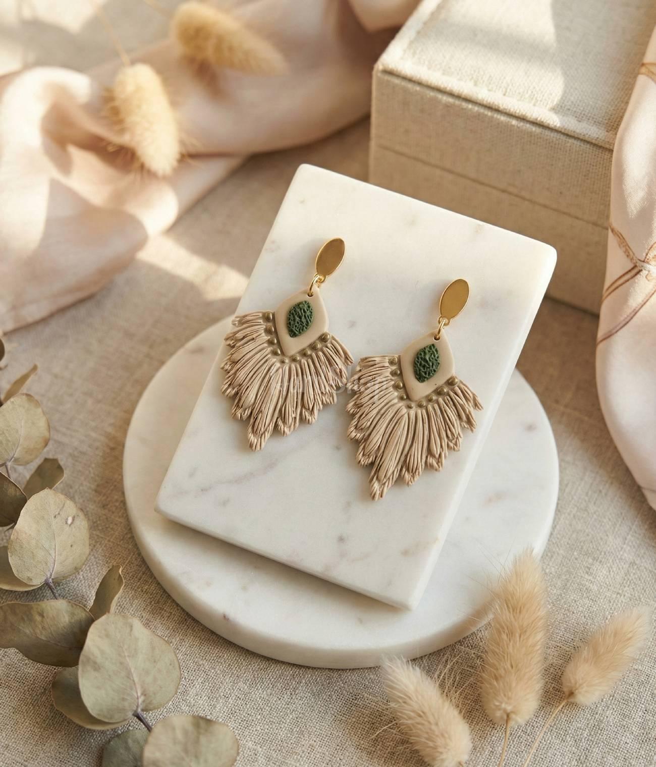 Особенности: серьги ручной работы – стильные женские серьги из полимерной глины в бежевой гамме. Женские серьги своими руками среднего размера исполнены в стиле бохо. Украшения серьги бижутерия на фурнитуре – нержавеющая сталь – это очень красиво, изысканно и модно. Серьги из полимерной глины в бежево-зеленой гамме дополнят ваш женственный и романтичный летний образ! Бижутерия серьги – это эффектные и модные аксессуары украшения модниц из полимерной глины! Благодаря неповторимости каждой детали и невероятной элегантности наши стильные серьги из полимерной глины станут воплощением вашего неповторимого стиля. Эти серьги в стиле бохо – это произведение искусства, отражающее неповторимый характер и индивидуальность своей обладательницы. Они изготовлены вручную, с использованием высококачественной полимерной глины, что придает им особый шарм и эстетичный вид. Серьги ручной работы бежевые идеально подходят для любой образности и напоминают о стилистике бохо — свободной, эклектической и изысканной. Они придают образу женственности и загадочности, делая его неповторимым и привлекательным. Эти женские серьги – это не просто аксессуары, они – выражение вашей личности и стиля. Добавьте им к своему ежедневному образу, чтобы создать непревзойденное сочетание элегантности и стиля, которое привлечет внимание и оставит незабываемое впечатление.
