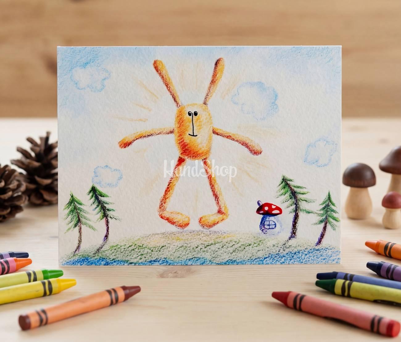 Особенности: двусторонняя поздравительная открытка ручной работы с авторским рисованным рисунком – солнышком, выполненной в технике акварельных карандашей! Размер открытки – 10 х 15 см, и она идеально подходит для любого важного события: от празднований до просто приятных моментов, когда хочется поделиться теплыми словами. Рисованная открытка изображает солнышко – символ радости и тепла, воплощенного в каждом мазке авторского рисунка. Изящные акварельные оттенки делают рисунок живым и ярким, добавляя нотки нежности и солнечного настроения. Открытка детская напечатана на плотной матовой фотобумаге, что делает ее устойчивой к повреждениям и приятной на ощупь. Это хендмейд изделие, придающее ей особую ценность. Каждая открытка изготовлена вручную, что делает ее уникальной и неповторимой. На обороте открытки есть специальные графы для пожеланий, где вы можете написать личное послание для родных и близких. Эта открытка станет прекрасным дополнением к подарку или самостоятельным выражением вашего внимания и заботы. Подарите теплоту и свет своим близким – эта авторская открытка с солнышком станет символом радости, которую вы хотите передать!