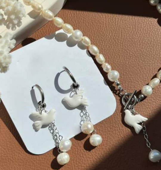 Сережки плашки білі голубки з полімерної глини гвоздики