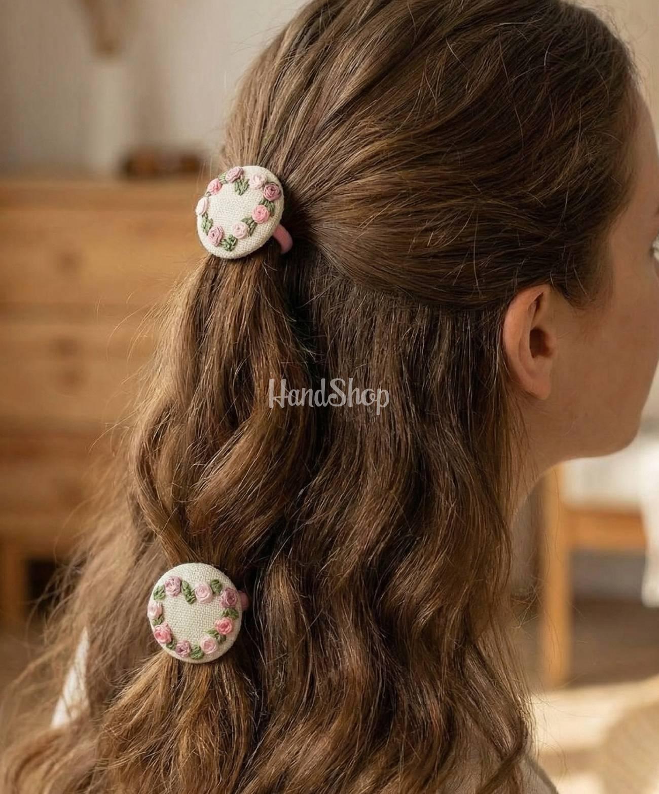 Особливості: аксесуари для волосся з вишивкою ручної роботи – пара дитячих резиночок для волосся своїми руками з авторською вишивкою квіти у вигляді сердечок. Основа резинок виконана з тканини – натуральний льон. Ручна вишивка квітів на резинках зроблена з використання шовкових ниток DMC Франція. Резинки для волосся своїми руками круглої форми – гудзички мають діаметр 2,7 см. Авторські прикраси для волося з вишивкою квіти в ніжно рожевій гамі – ексклюзивно, стильно та дуже красиво! Авторська резинка для волосся з маленькими вишитими квітами – прекрасне, романтичне доповнення образу. Резинка для волосся квіти бутони – це дуже жіночно, яскраво та креативно!
