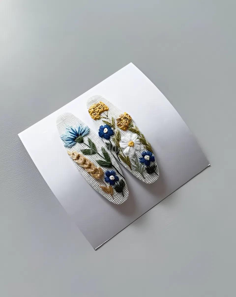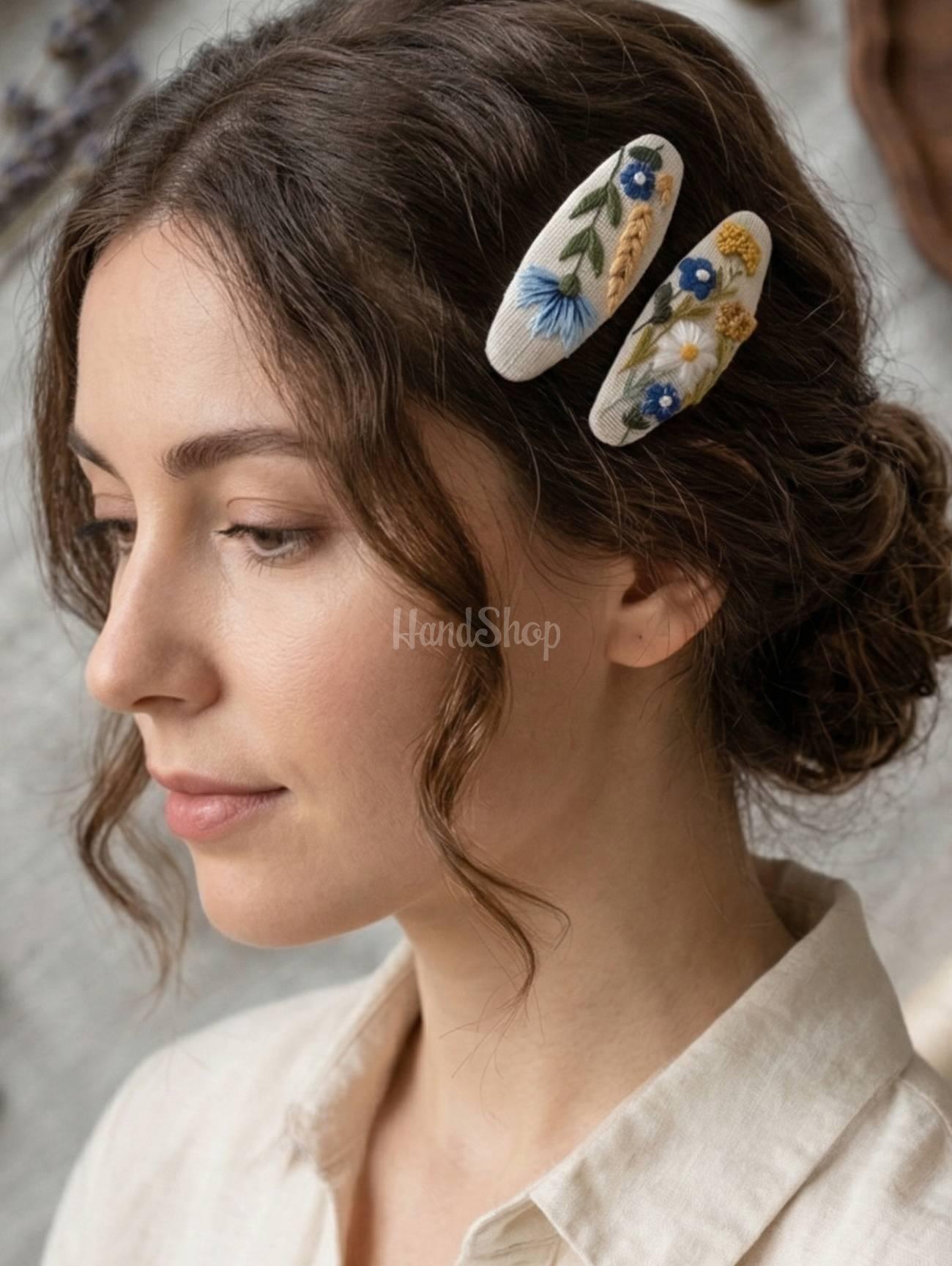 Особливості: дитячі аксесуари для волосся з вишивкою ручної роботи – пара заколочок клік-клак для волосся своїми руками з авторською вишивкою польові квіти України. Основою заколочок є натуральний льон – екологічний, приємний на дотик матеріал, який ідеально підходить для дитячих аксесуарів. Поверхня прикрашена витонченою ручною вишивкою польових квітів: ніжних ромашок, яскравих волошок та золотистих колосків пшениці. Ці мотиви символізують красу української природи, тепло літа та глибокий зв’язок із традиціями. Вишивка виконана високоякісними шовковими нитками DMC (Франція), які надають малюнку делікатного блиску, виразності та забезпечують довговічність виробу. Кожен стібок – це результат ручної праці, тому кожна пара заколочок має свою унікальність. Металева основа клік-клак довжиною 6 см надійно фіксує волосся, не ковзає та забезпечує комфорт протягом усього дня. Заколочки легко використовувати як для щоденних зачісок, так і для святкових образів – вони гармонійно доповнять будь-який стиль маленької модниці. Ця пара заколочок з вишивкою – чудовий подарунок для дівчинки, яка цінує красу, ніжність і особливі речі. Поєднання натуральних матеріалів, традиційної української вишивки та сучасного дизайну робить цей аксесуар по-справжньому особливим. Обирайте не просто прикраси – обирайте історію, створену руками майстра.