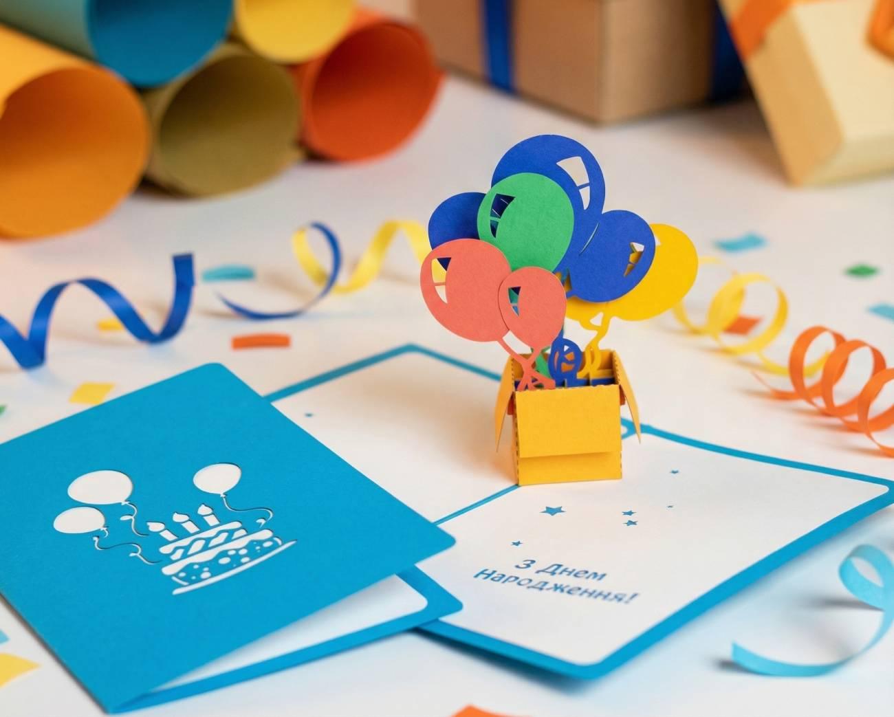 Особливості: вітальа дитяча листівка ручної роботи – 3d листівка виготовлена з італійського дизайнерського картону – справжній витвір мистецтва, який додасть особливого шарму вашому подарунку! Усередині святкова листівка має унікальну 3d ілюстрацію зі святковими різнокольоровими кульками, розташованими в помаранчевій коробочці, а також теплий напис «З Днем Народження» українською мовою. Це не просто вітальна дитяча листівка, а частинка вашої уваги та турботи, яка зробить свято ще більш незабутнім. Даруйте авторські 3D листівки своїм близьким та друзям, щоб оригінально висловити свої почуття! Кожна така об’ємна листівка з кульками – це чудовий спосіб підкреслити важливість моменту та зробити його незабутнім. наша авторська листівка для сестри, подруги чи коханої – кожен знайде у нашому асортименті щось особливе для себе! Подаруйте незабутні емоції та порадуйте близьких неперевершеними 3D листівками. Купити 3D листівки з кульками – це завжди оригінально та незвично!