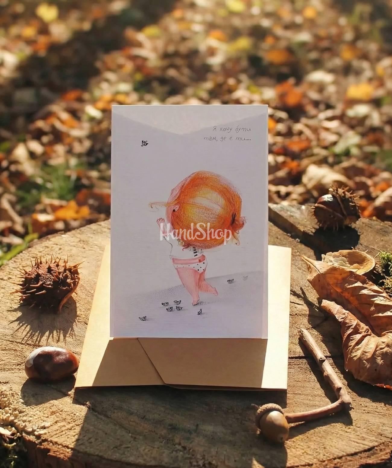 Особливості: авторська мальована листівка ручної роботи у щільному конверті з написом українською мовою: «Я хочу бути там де є ти..», який чудово передає емоції і глибокі почуття. Ця оригінальна листівка ручної роботи – більше, ніж просто картка. Це ніжне зізнання, яке гріє серце. Теплі слова «Я хочу бути там, де є ти…» українською мовою влучно передають любов, ніжність та підтримку. Висловіть свої почуття оригінальною листівкою ручної роботи! Ця елегантна листівка у щільному конверті стане чудовим способом передати вашу любов і підтримку близьким. Кожна наша мальована листівка створена з любов’ю та увагою до деталей. Хендмейд листівка – романтичне зізнання! Даруйте листівки авторські – оригінально висловлюючи ваші почуття! Ця листівка стане прекрасним доповненням до будь-якого подарунка або самостійним жестом уваги для друзів, родини чи коханих. Не пропустіть можливість подарувати частинку свого серця! Замовте нашу листівку вже сьогодні та зробіть свято ще особливішим. Подаруйте частинку себе тим, хто далеко, або зробіть приємне коханій людині без особливої нагоди. Це не просто мальована листівка – це емоція, збережена на папері.