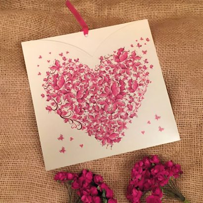Особливості: весільні вітальні листівки конверти – красива романтична листівка квадратної форми 17 х 17 см, виготовлена з турецького бежевого дизайнерського картону, який приємний на дотик і виглядає стильно та вишукано – справжній витвір мистецтва. Особливої чарівності весільній листівці конверту додає авторський малюнок – велике рожеве серце з метеликів, сердечок. Це ніжний авторський малюнок, що символізує кохання, яке складається з маленьких, але щирих моментів. Ця романтична листівка – не просто спосіб привітати молодят, а справжній витвір мистецтва, створений, щоб дарувати емоції. Всередині листівки серце – витончена вкладка для привітань, яку можна легко вийняти та заповнити власноруч й додати приємний грошовий сюрприз на щасливий початок подружнього життя. Це зручно, естетично і з глибоким змістом. Ця сувенірна листівка серце – це момент щастя, який залишиться з молодятами назавжди. Подаруйте тепло, оформлене в красу. Подаруйте серце, створене з любові.