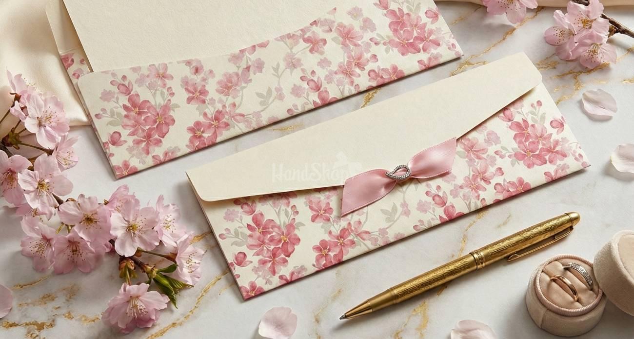 Особливості: весільні конверти для грошей – оригінальний квітковий святковий довгий конверт 10 х 27,5 см, виготовлений з турецького бежево-рожевого дизайнерського картону, який приємний на дотик і виглядає стильно та вишукано – справжній витвір мистецтва. Оригінальний довгий святковий конверт розміром 10 × 27,5 см виготовлений з турецького бежево-рожевого дизайнерського картону. Матеріал приємний на дотик, щільний і водночас вишуканий, виглядає дорого та елегантно – справжній витвір мистецтва, що одразу привертає увагу. Особливої чарівності виробу надає авторський малюнок із ніжним яблуневим цвітом. Весняні квіти символізують чисте кохання, гармонію та новий початок – саме те, що так важливо для молодят. Атласний бант у тон квітів додає об’єму та святковості, а центральний акцент композиції – оригінальне з’єднання банта срібною пластиковою підковкою – уособлює щастя, удачу та добру долю для новоствореної сім’ї. Гармонійне поєднання бежевих, рожевих і срібних відтінків створює легкий, романтичний настрій і додає подарунку особливої витонченості. Обираючи цей конверт, ви даруєте не просто грошовий подарунок – ви даруєте емоцію, естетику та красиву пам’ять про важливий день.